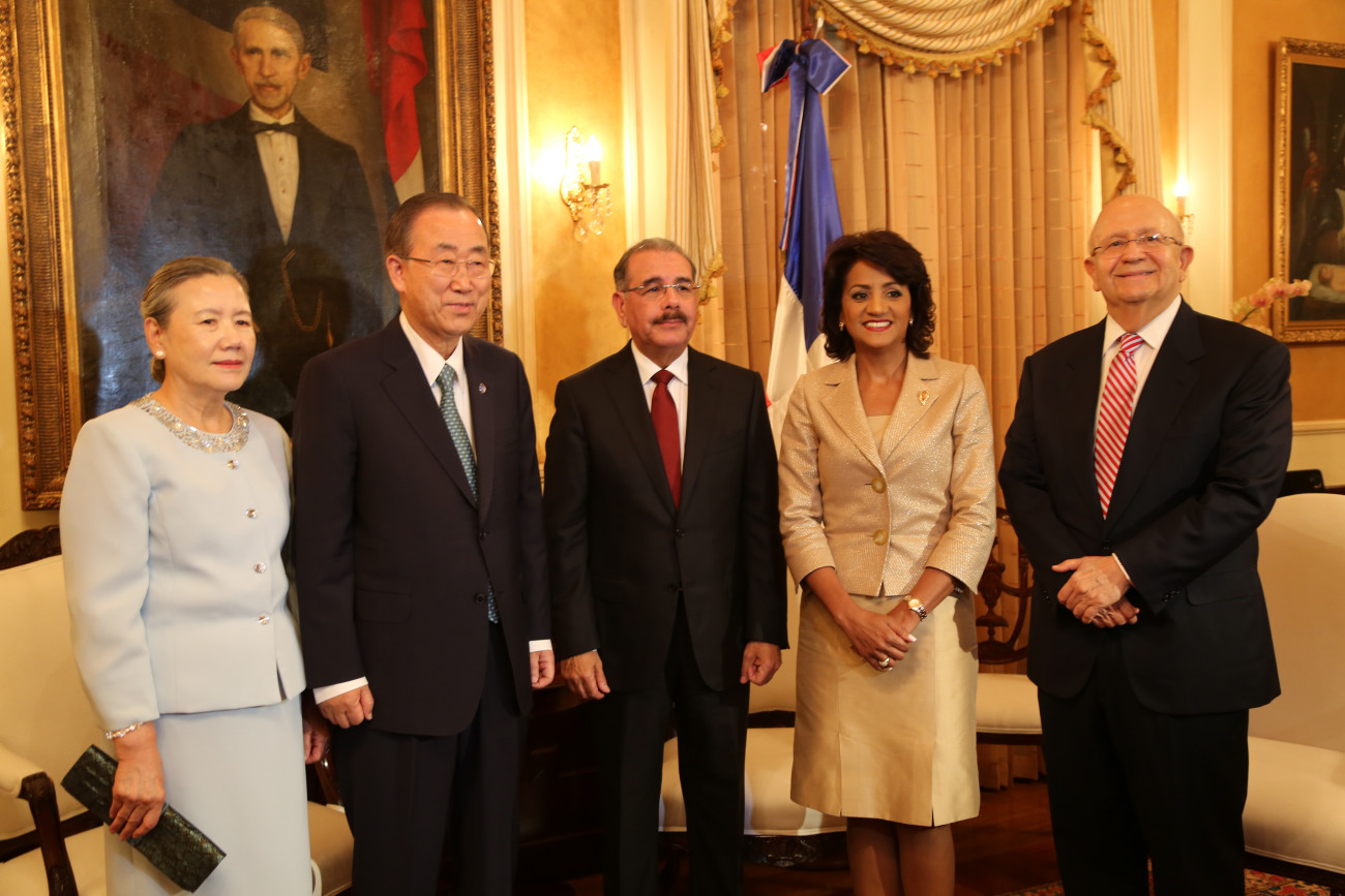 A la izquierda, señora Yoo Soon-Taek, seguida de su esposo Ban Ki-moon, secretario general de la ONU; presidente de la República, Danilo Medina Sánchez, junto a su esposa señora Cándida Montilla de Medina y el ministro de Relaciones Exteriores, Carlos Morales Troncoso. Foto: Presidencia República Dominicana new.livestream.com/PresidenciaRD/SecretarioONUyPresidente...