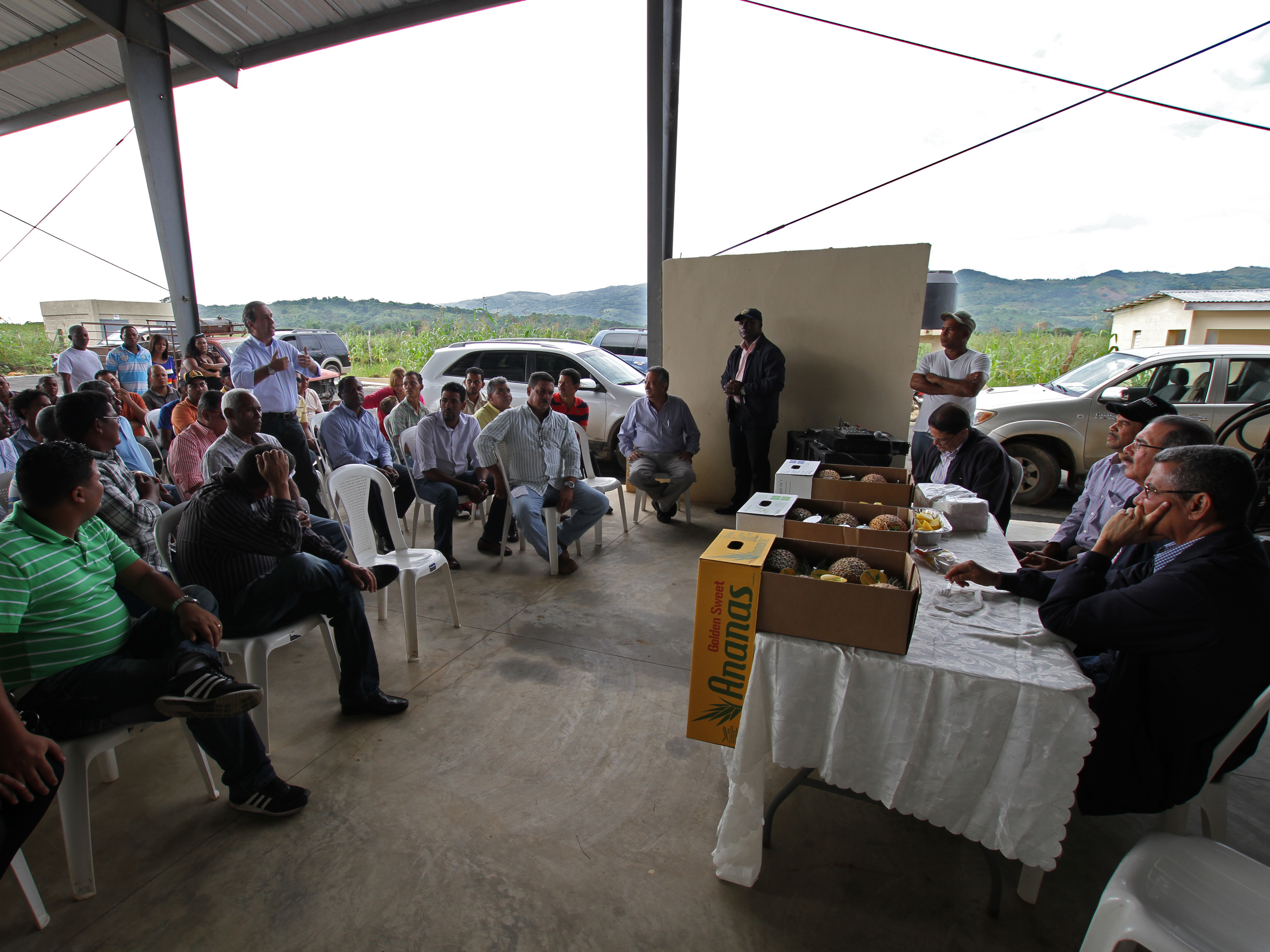El presidente Medina escucha de boca de los productores de APROPIÑA su situación y sus necesidades.