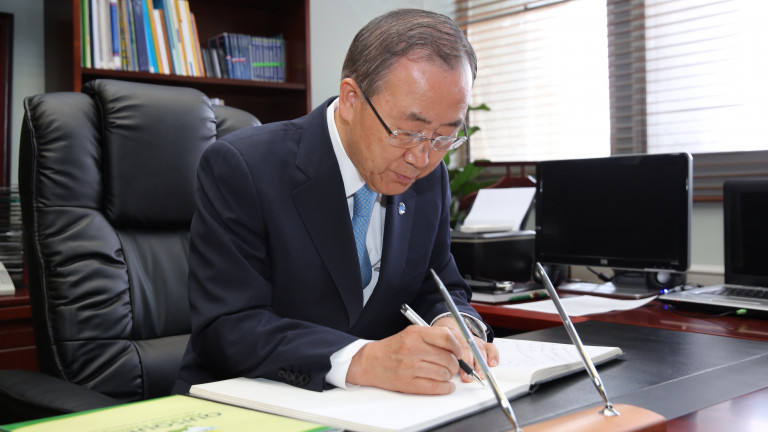 "Quiero agradecer y felicitar la visión de Danilo Medina y su Gobierno por esta campaña de tanto sentido", manifestó Ban Ki-moon, secretario general de la ONU, durante su visita a la sede de la institución.