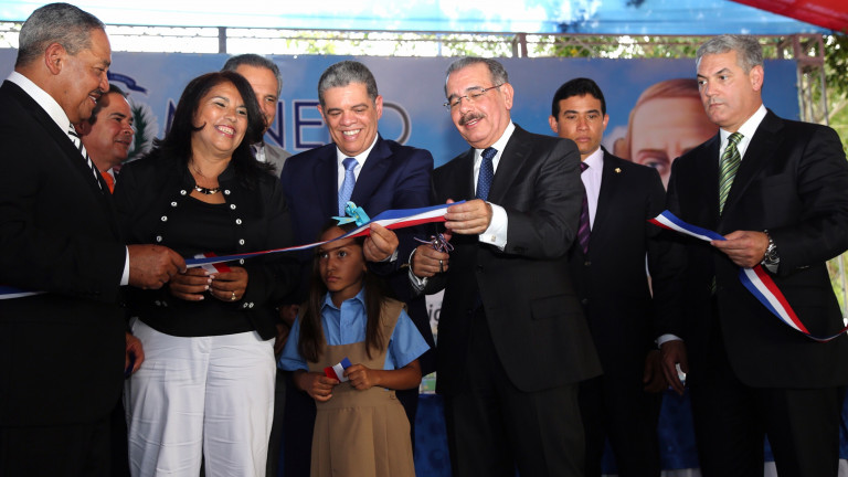 El presidente Danilo Medina corta la cinta para entregar las 5 escuelas, con 91 aulas para la Tanda Extendida, que beneficiarán a a 3,185 estudiantes de la provincia Santiago Rodríguez.
