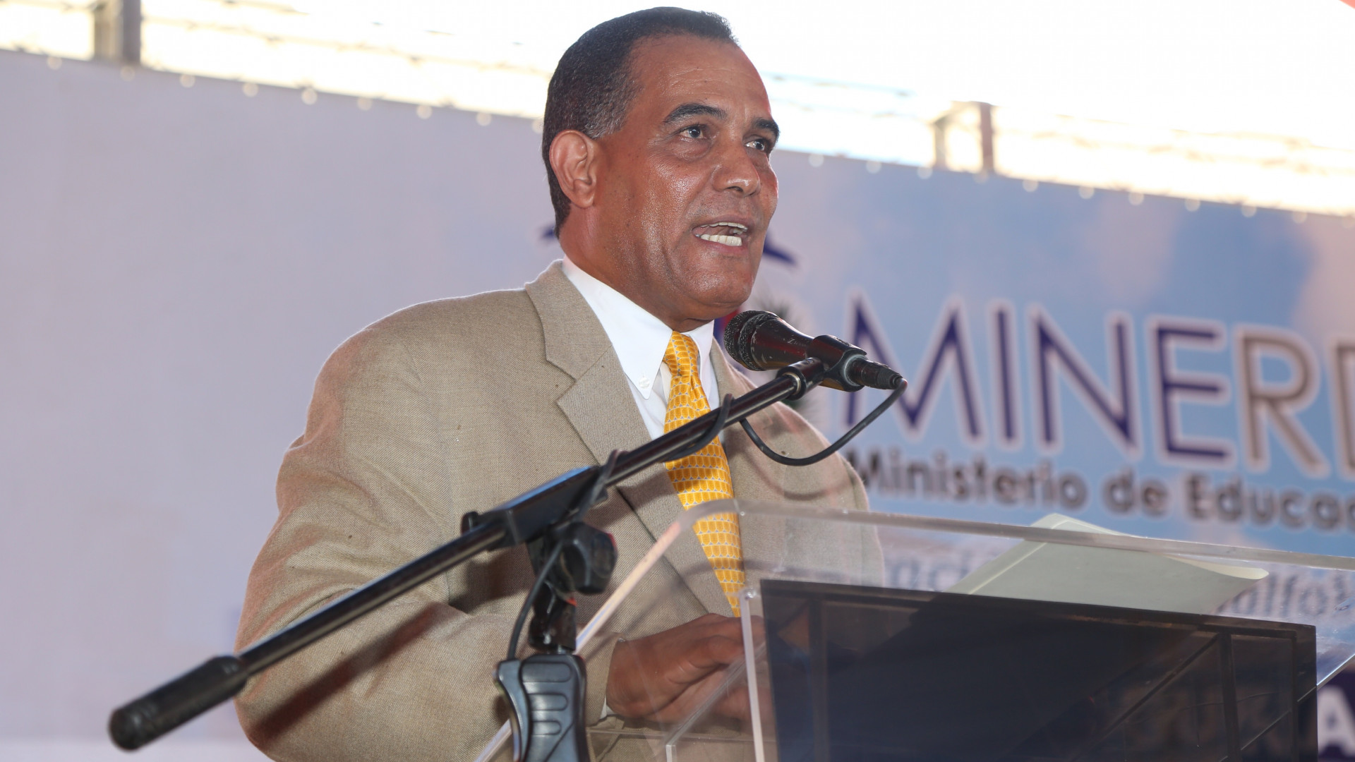 Agrónomo Ángel Odalís Zabala Segura, durante su discurso en el acto inaugural de los centros educativos entregados en acto encabezado por el presidente Medina.