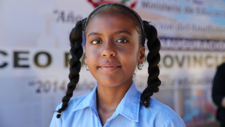 Ana Mercedes Hernández, estudiante de 7mo. grado, de un de las 5 escuelas entregadas. Los nuevos planteles escolares ofrecerán a los alumnos las facilidades de bibliotecas, aulas de nivel inicial, rincones tecnológicos, enfermería, salón multiuso, cocina, comedor, plaza cívica y cancha, así como laboratorios de ciencias y de informática.