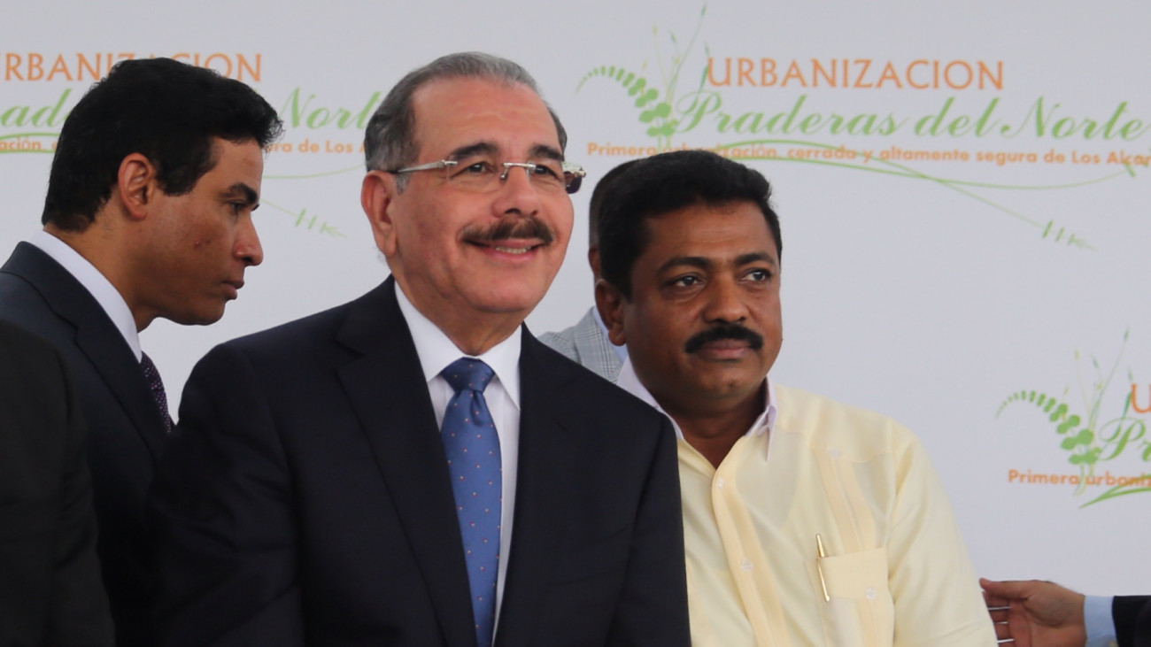 Participación del presidente Danilo Medina, durante el inicio de la construcción del proyecto Urbanización Praderas del Norte. A su lado figura, Junior Santos, alcalde de Santo Domingo Oeste.