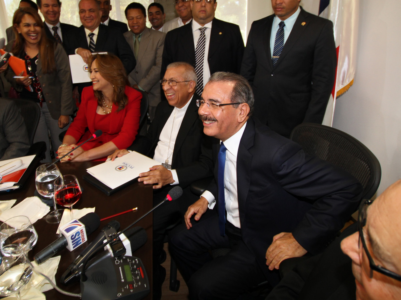 El presidente Medina y los presentes sonríen momentos antes de terminar la reunión, donde se trazó un camino claro para el desarrollo de Santiago en los próximos cuatro años.