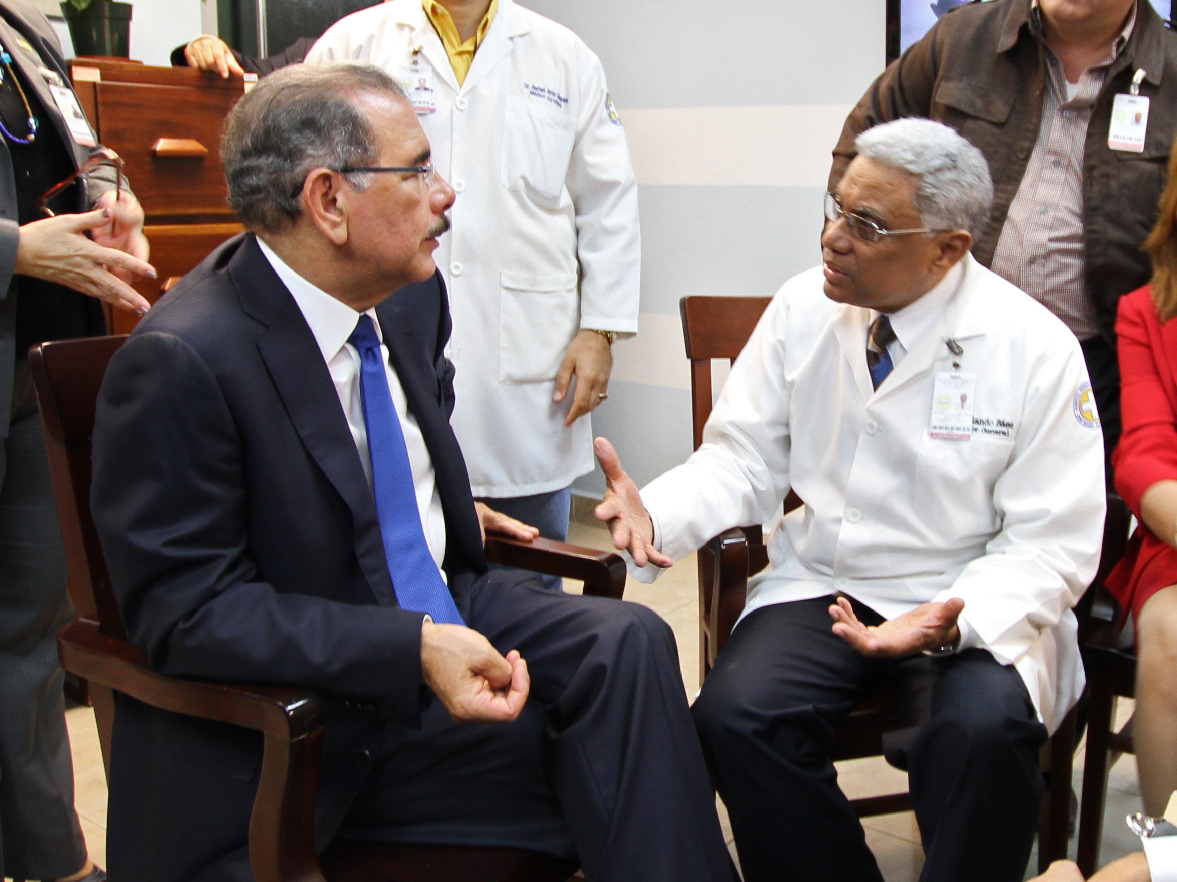 Finalizado el recorrido del hospital Cabral y Báez, el presidente Medina y el doctor Rolando Báez, director del hospital, conversaron sobre las necesidades de ese centro de salud.