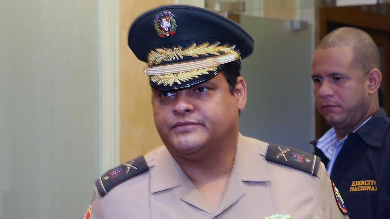 General Juan Manuel Méndez, director general del Centro de Operaciones de Emergencias (COE), durante reunión conjunta con el administrador general de Empresa de Generación Hidroeléctrica Dominicana (EGEHID), Demetrio Lluberes, quienes rindieron un informe pormenorizado al Presidente Medina sobre las acciones para proteger a la población civil y sobre el nivel de los embalses y contra embalses de las presas del país.