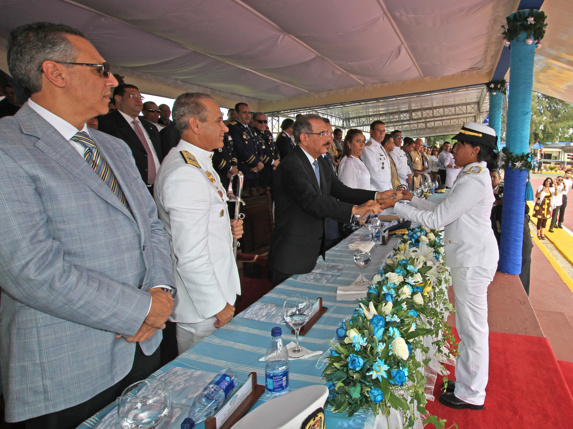 Luego de juramentar a los nuevos segundos tenientes, el presidente Danilo Medina les hizo entrega de sus sables de mando de manera individual.