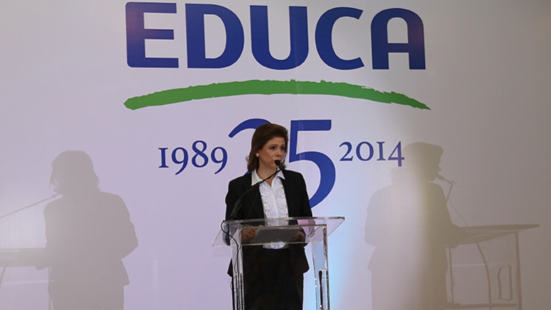 La empresaria Elena Viyella de Paliza, presidenta de Acción Empresarial por la Educación (EDUCA), reconoció a Danilo Medina como el primer Presidente en cumplir con lo dispuesto por la ley, el asignar el 4% del PIB a la Educación.