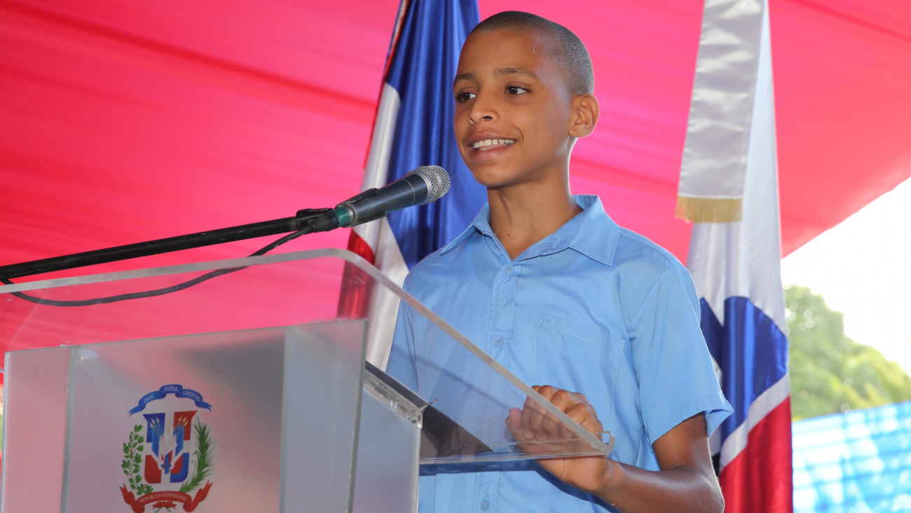 Las palabras para agradecer al Gobernante por los nuevos centros educativos recayó en el estudiante Yaiker Bautista, quien aseguró que con la tanda extendida se garantiza el futuro de la juventud dominicana.