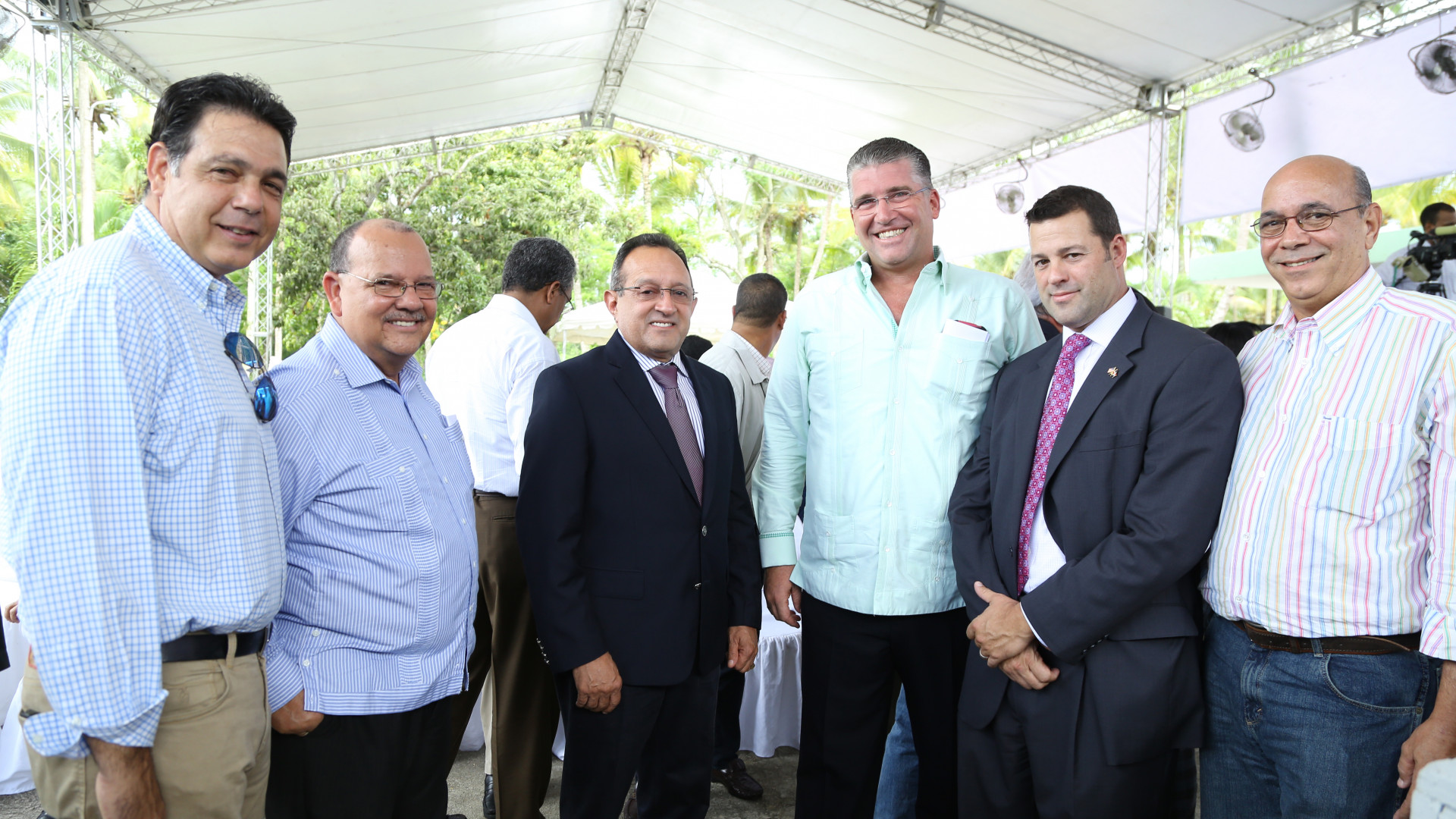Al centro, el ministro de Agricultura, Ángel Estévez junto al presidentes de la Asociación Dominicana de Productores de Leche, Eric Rivero, y el presidente del Patronato Nacional de Ganaderos, René Columna, entre otros presentes en la actividad.