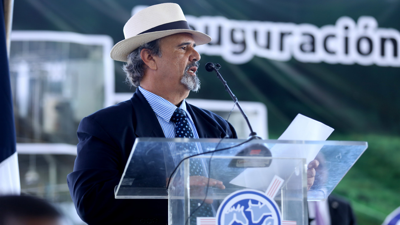 Participación de Pablo Contreras, presidente de la Asociación de Ganaderos de Monte Plata (AGAMPTA), durante su discurso.