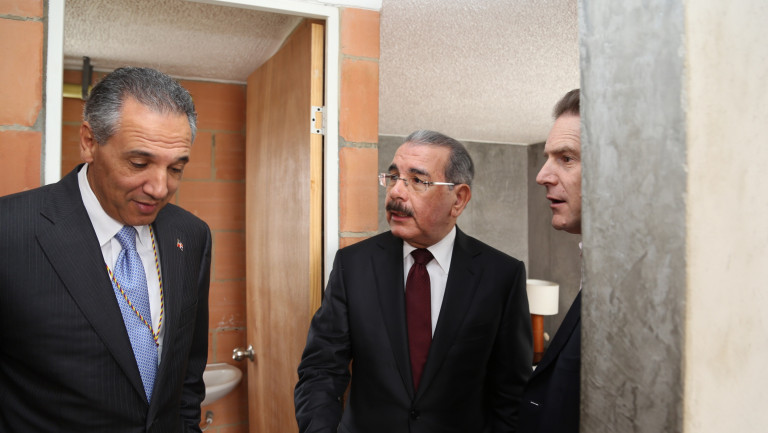 Recorrido del Presidente de la República Danilo Medina Sánchez junto al ministro administrativo de la Presidencia, José Ramón Peralta y acompañantes, por el apartamento modelo del Macro Proyecto Ciudad Verde, donde están previstas aproximadamente 49.500 viviendas que equivalen a una población de 200.000 habitantes.