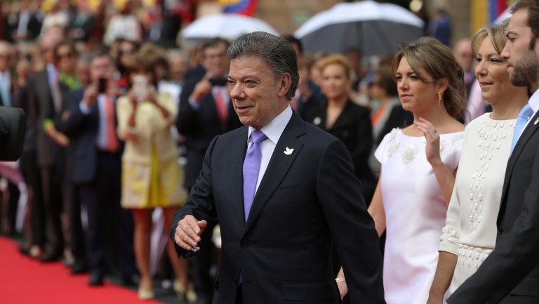 Presidente Juan Manuel Santos, su esposa María Clemencia Rodríguez de Santos, primera dama de Colombia e hijos, Martín, María Antonia y Esteban, durante su llegada al acto oficial de su segunda juramentación como Jefe de Estado para el periodo 2014-2018.