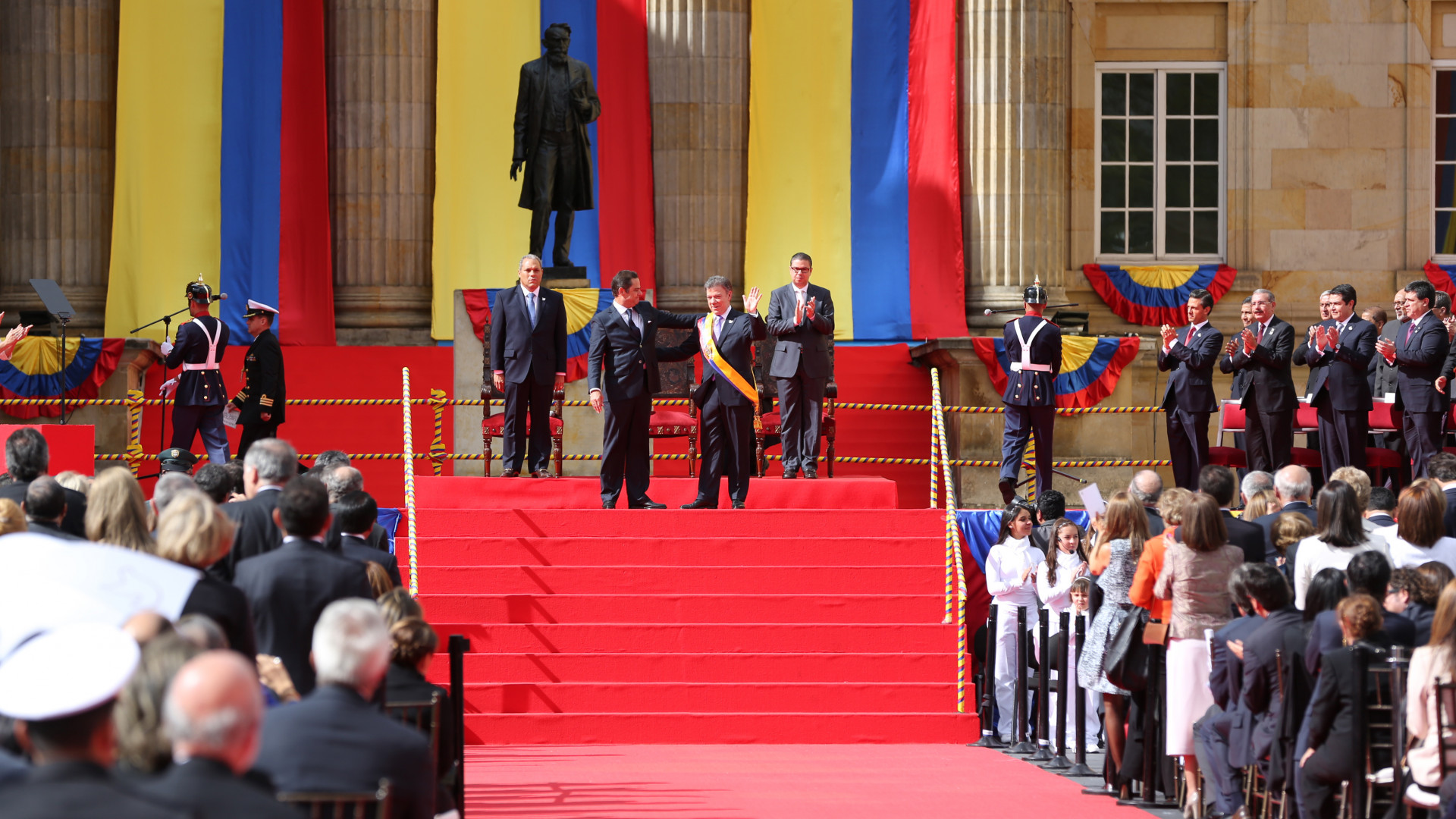 Juramentación de Juan Manuel Santos, presidente de Colombia. Presidente Medina asiste