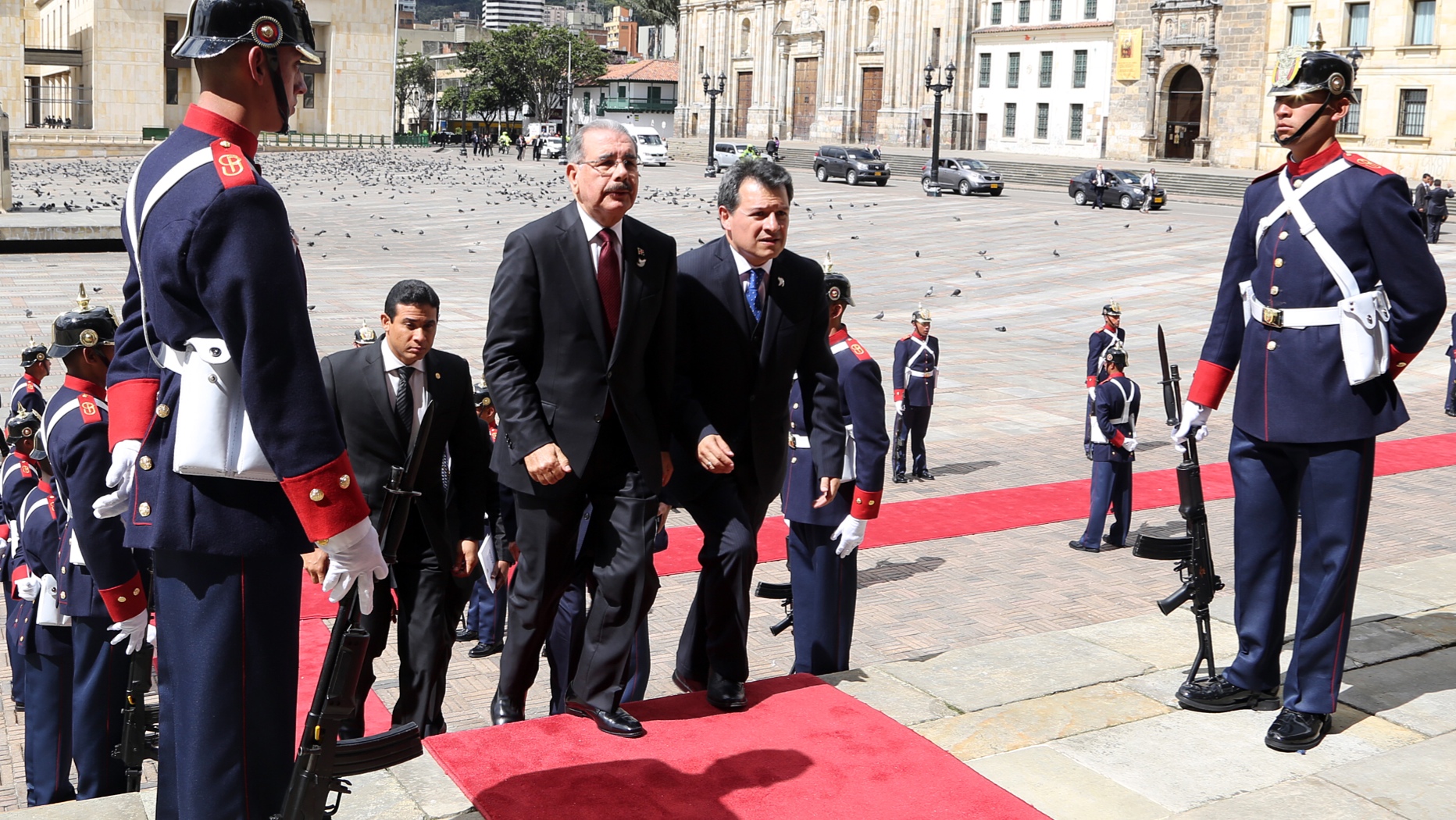 El presidente Danilo Medina durante su participación en los actos oficiales por toma de posesión del Mandatario colombiano, Juan Manuel Santos, que se realizan en el Patio Núñez, situado entre el Capitolio y la Casa de Nariño, sede presidencial.