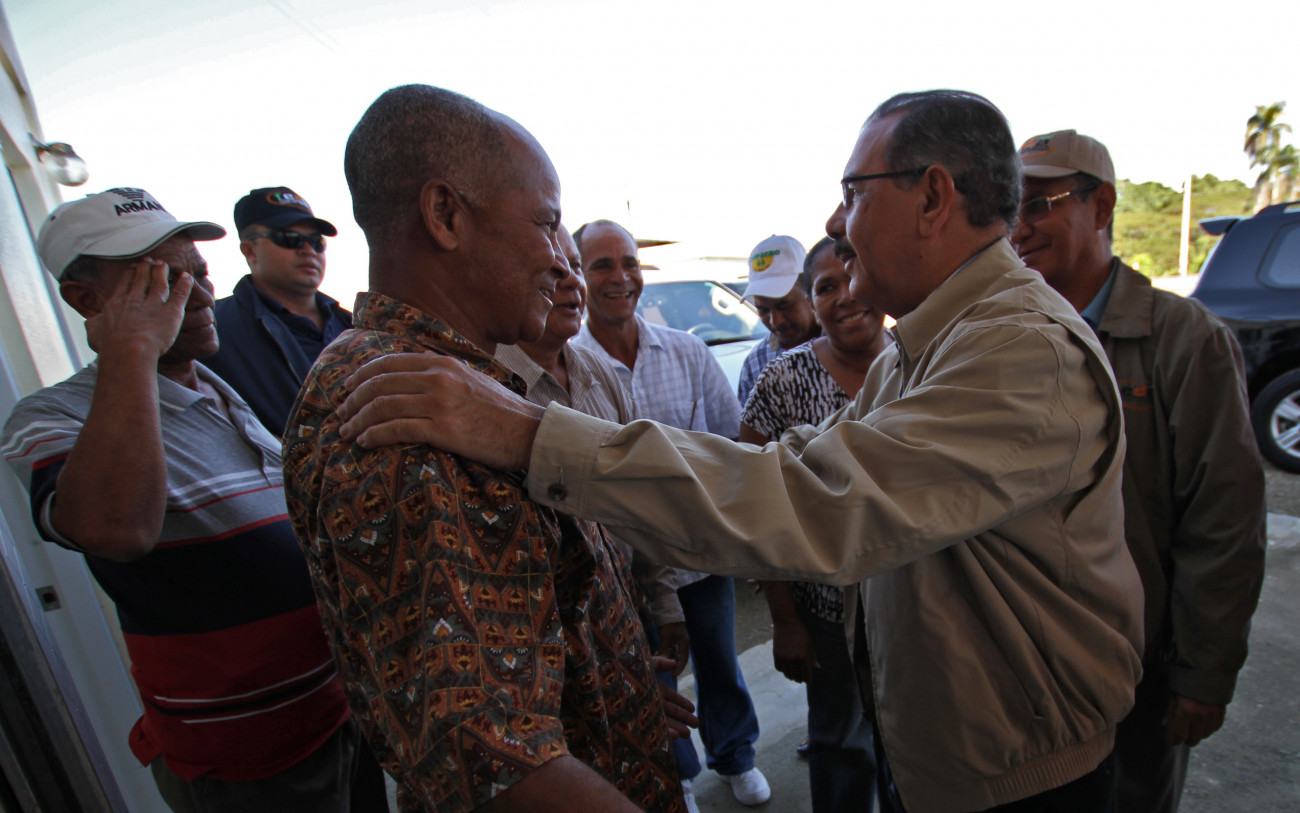 El presidente Danilo Medina al reunirse con pequeños y medianos productores de vegetales orientales de la zona.