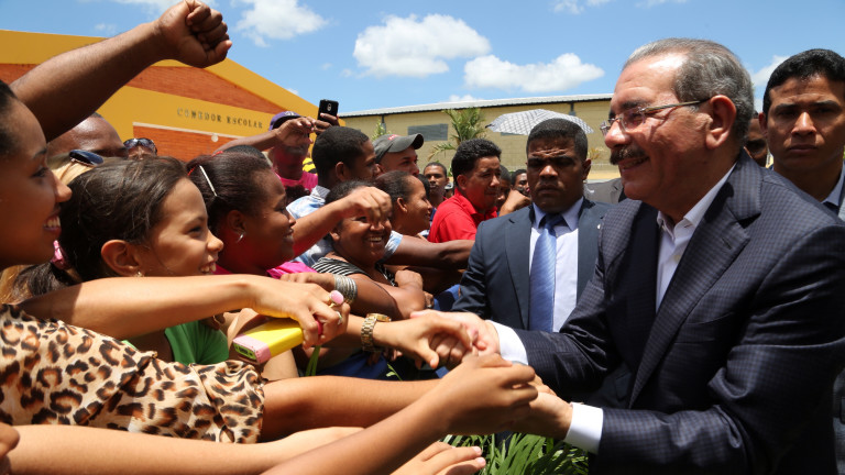 El presidente de la República Danilo Medina Sánchez saluda moradores de la zona luego de participar en los actos programados por la entrega de los centros de educativos.