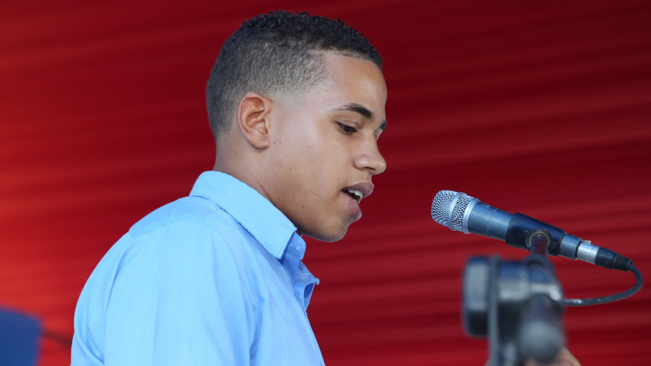 Wellington Abreu Morel agradece al presidente Danilo Medina la entrega de la obra al hablar en nombre de sus compañeros de estudios.