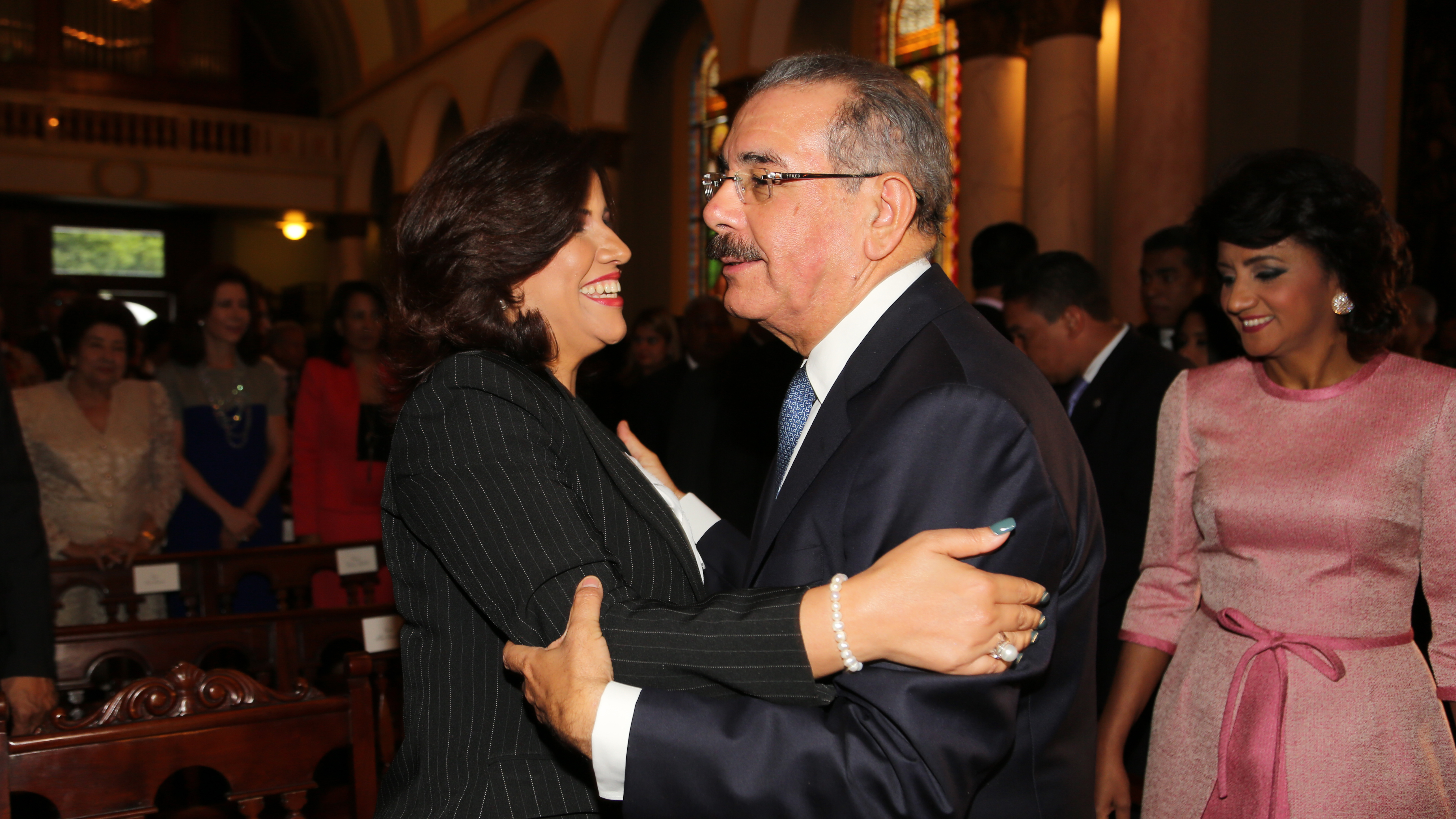El presidente Danilo Medina Sánchez y la vicepresidenta, señora Margarita Cedeño de Fernández, se dan el saludo de la paz que se realiza durante la Santa Misa.