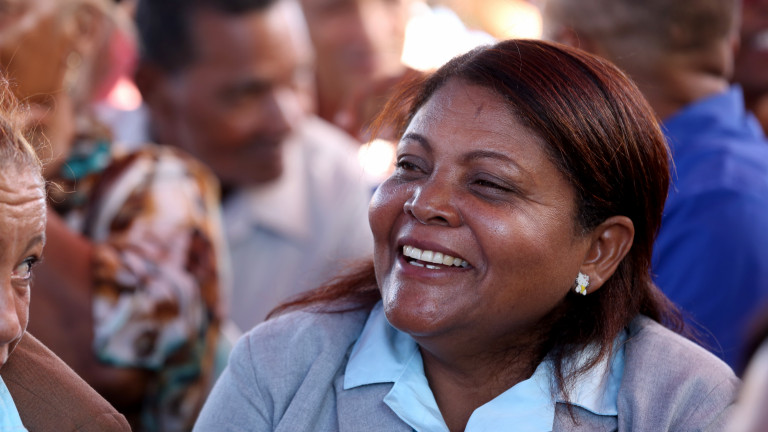 Profesora presente durante acto inaugural de los centros educativos entregados en la localidad de Las Charcas, en Azua. Los tres modernos centros educativos fueron construidos con una inversión de 106 millones 349 mil pesos.