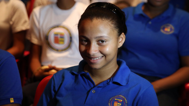 Estudiantes y directivos presentes, dieron una cálida bienvenida al Presidente. Foto: Luis Ruiz Tito/Presidencia República Dominicana Nota de prensa: presidencia.gob.do/noticias/danilo-medina-inaugura-aulas-...