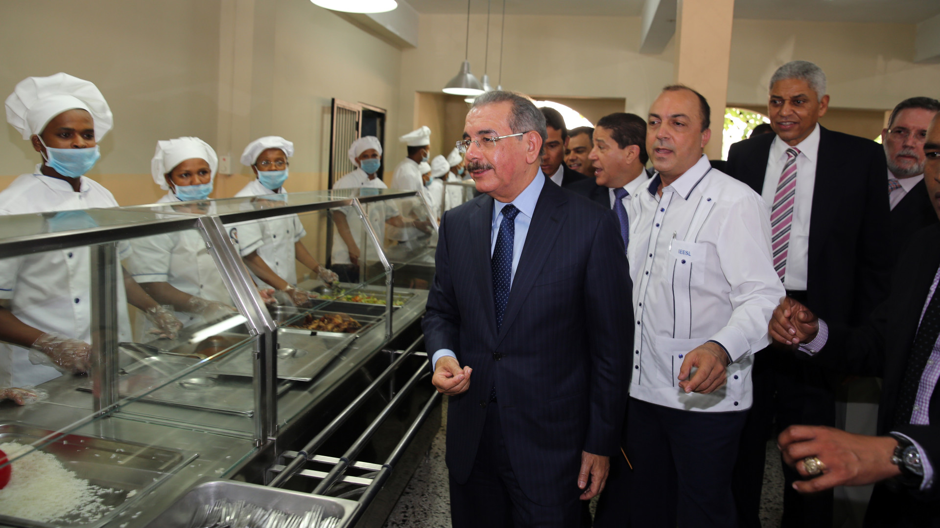 Danilo Medina inaugura aulas en Politécnico Loyola; almuerza con estudiantes