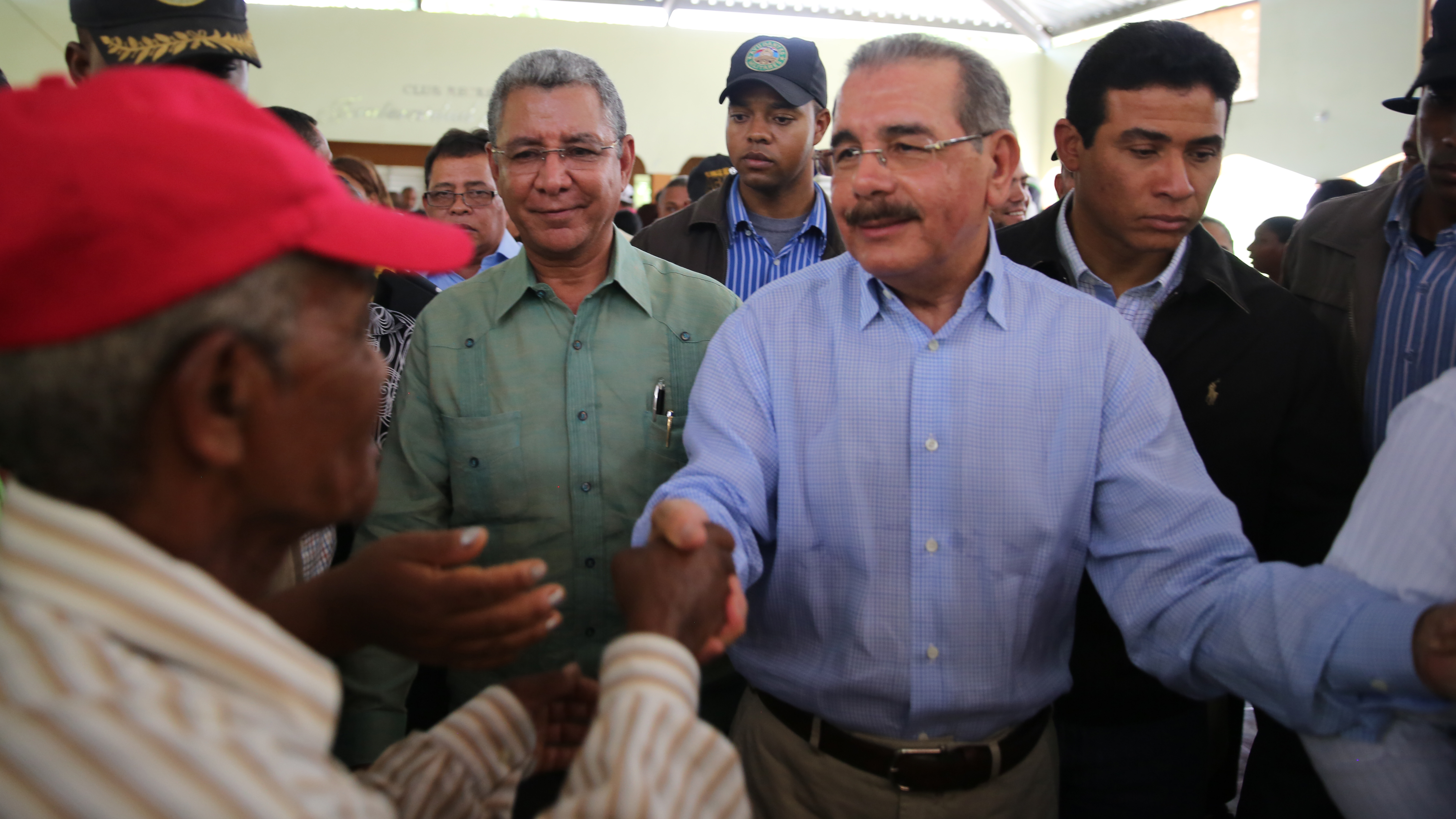 El presidente Medina estrecha las manos a productores agropecuarios presentes
