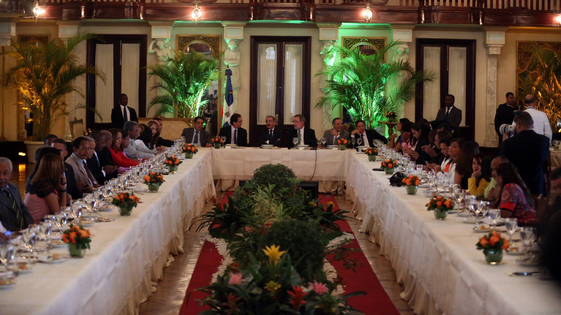 Participación del presidente Danilo Medina al encabeza un interesante encuentro-almuerzo con periodistas que cubren la fuente de Palacio Nacional, efectuado en el Salón Las Cariátides de la Casa de Gobierno.