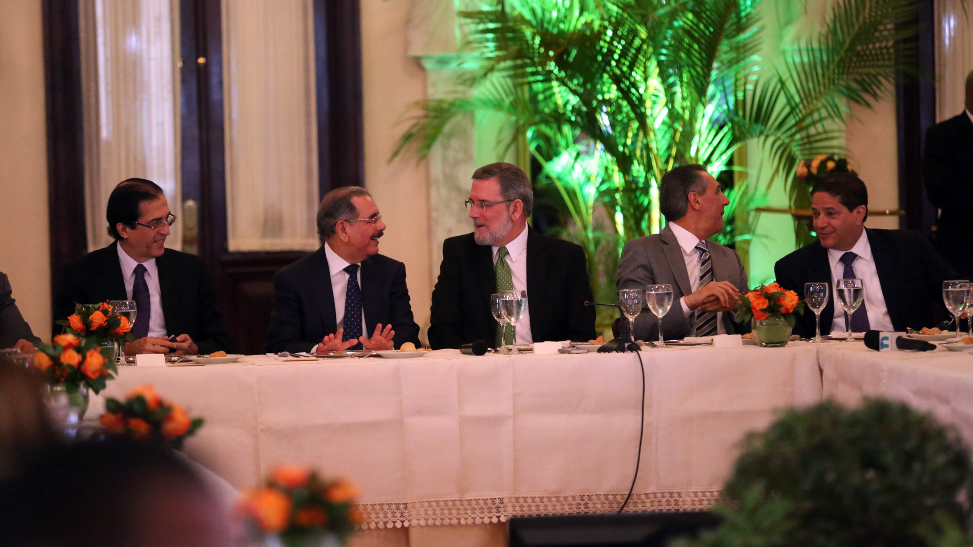 Gustavo Montalvo, ministro de la Presidencia; presidente Danilo Medina; Roberto Rodríguez Marchena, director de DICOM; José Ramón Peralta, ministro administrativo y Carlos Pared Pérez, asistente personal del Presidente