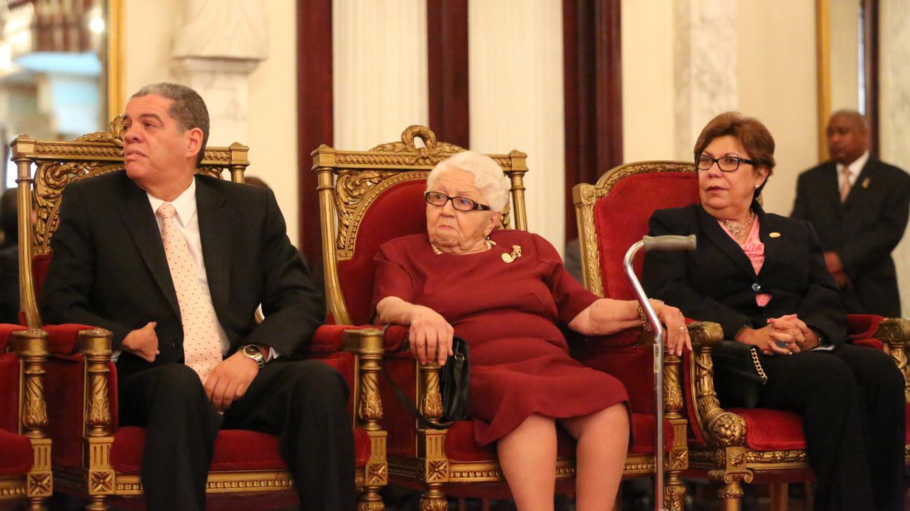 Carlos Amarante Baret, junto a la madre y la esposa del galardonado, señoras Juana Santana y Ada Wiscovitch, respectivamente.
