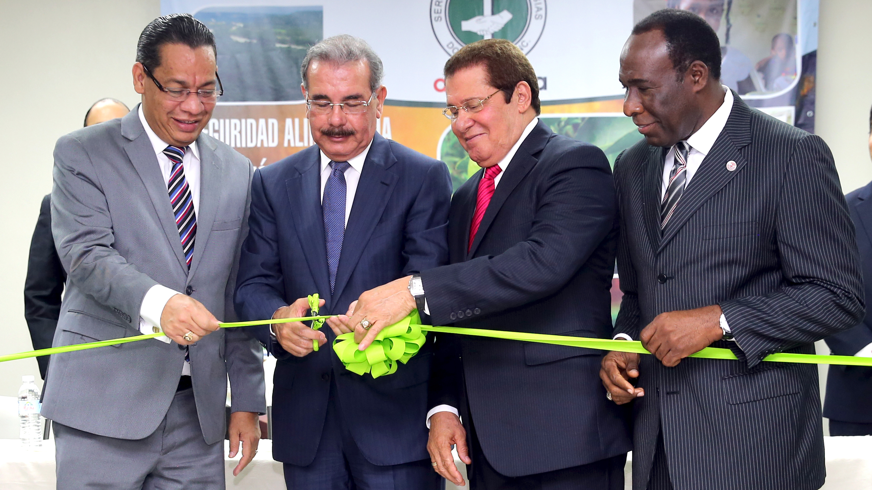 Presidente Danilo Medina y directivos del Servicio Social de Iglesias Dominicanas, INC., cortan la cinta para dejar inaugurado el nuevo edificio, en ocasión de conmemorar su 52 aniversario.