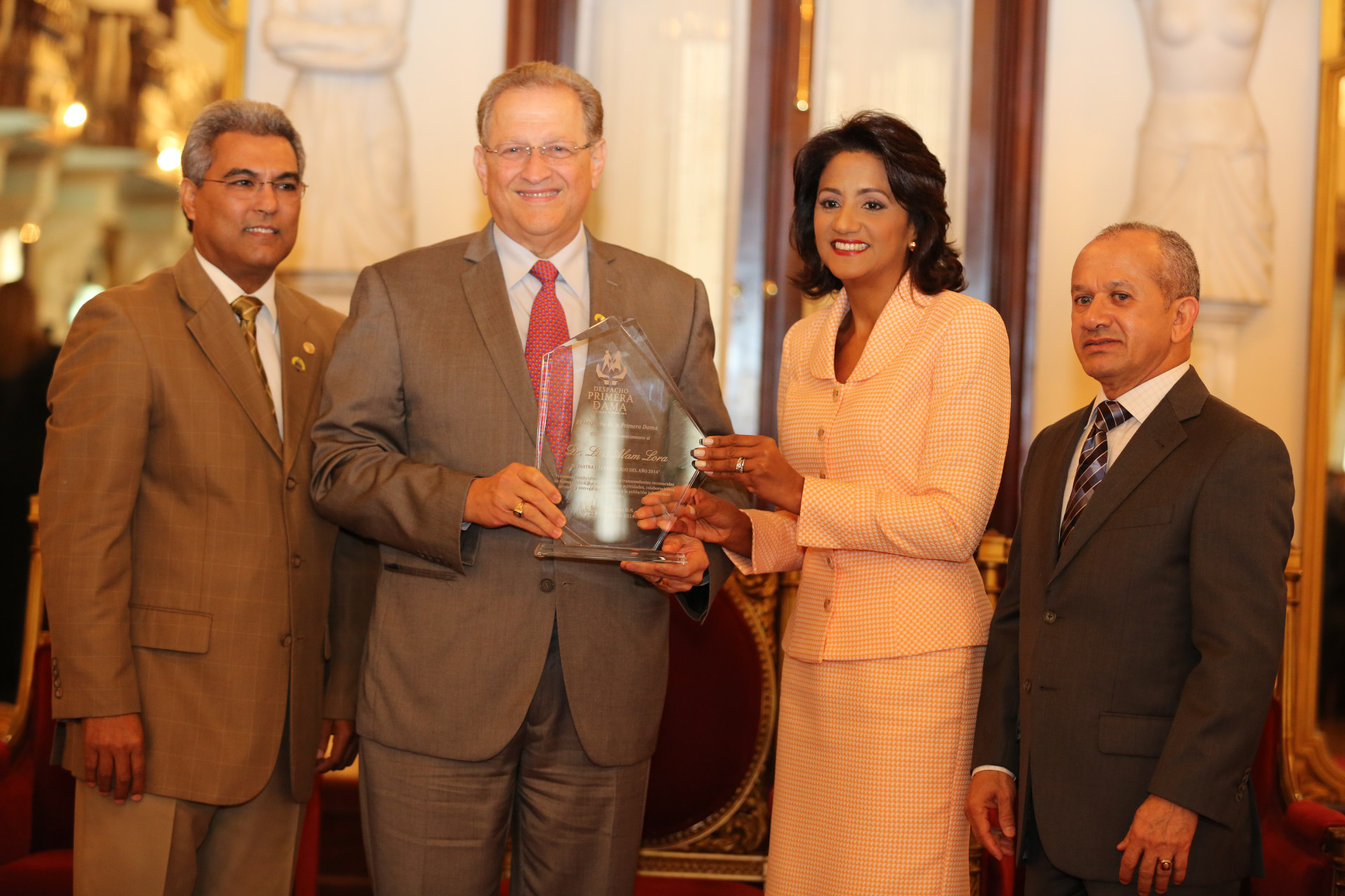 Señora Cándida Montilla de Medina, esposa del Presidente, junto al doctor Luis Alam Lora, pediatra más destacado del año 2014; el Ministro de Salud y el Presidente de la Asociación de Pediatría. Foto: Presidencia República Dominicana Nota de prensa: presidencia.gob.do/noticias/primera-dama-entrega-premio-n...