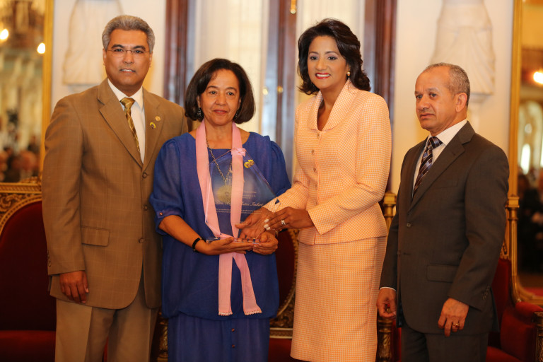 Participación de la Primera Dama durante acto de premiación a la doctora Ángela Matos Imbert, endocrinóloga de Santiago, junto al ministro de Salud, doctor Freddy Hidalgo y el doctor Rodolfo Soto Ravelo, presidente de la Sociedad Dominicana de Pediatría.