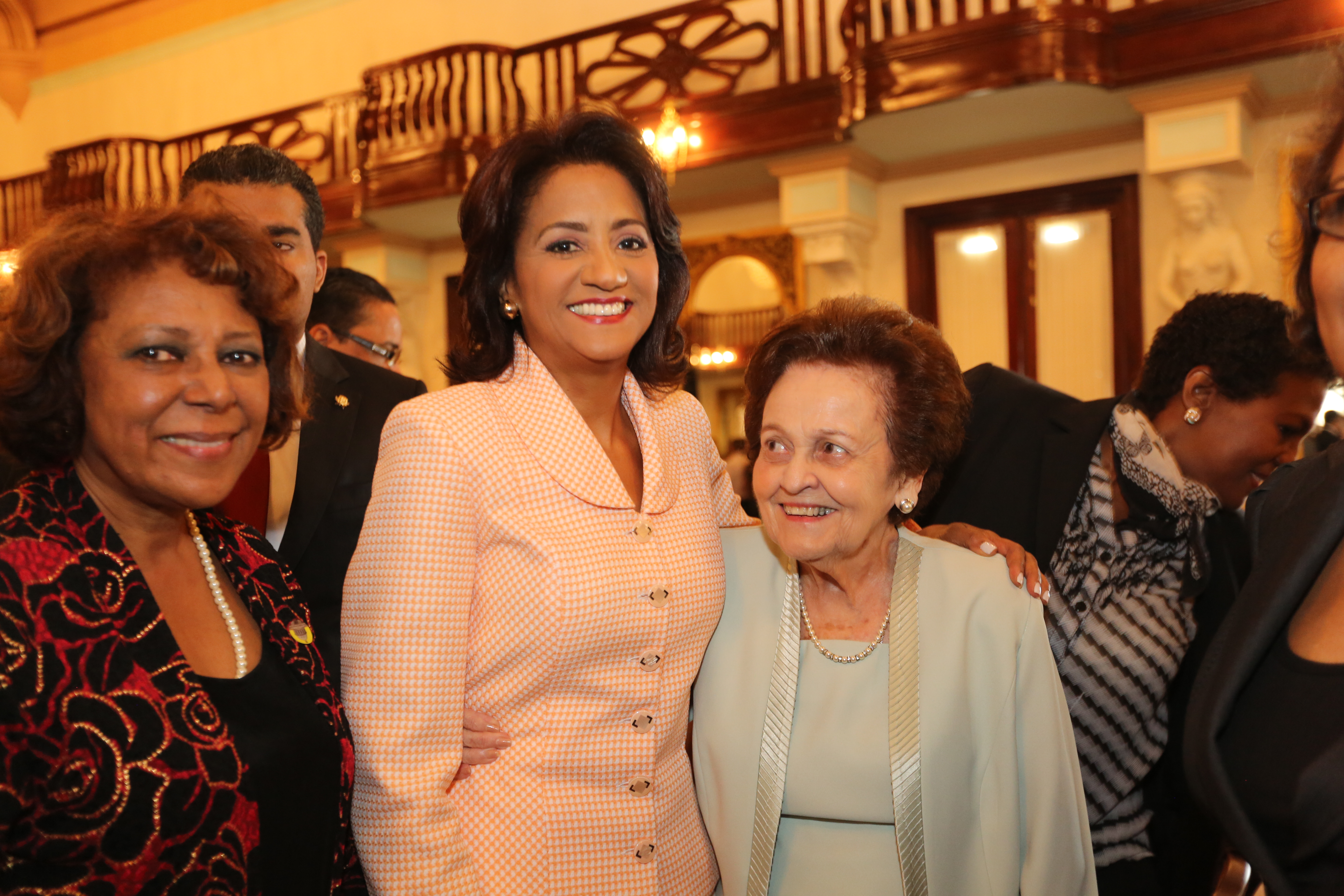 Señora Cándida Montilla de Medina y doña Mery Pérez de Marranzini, presidenta de la Asociación Dominicana de Rehabilitación.