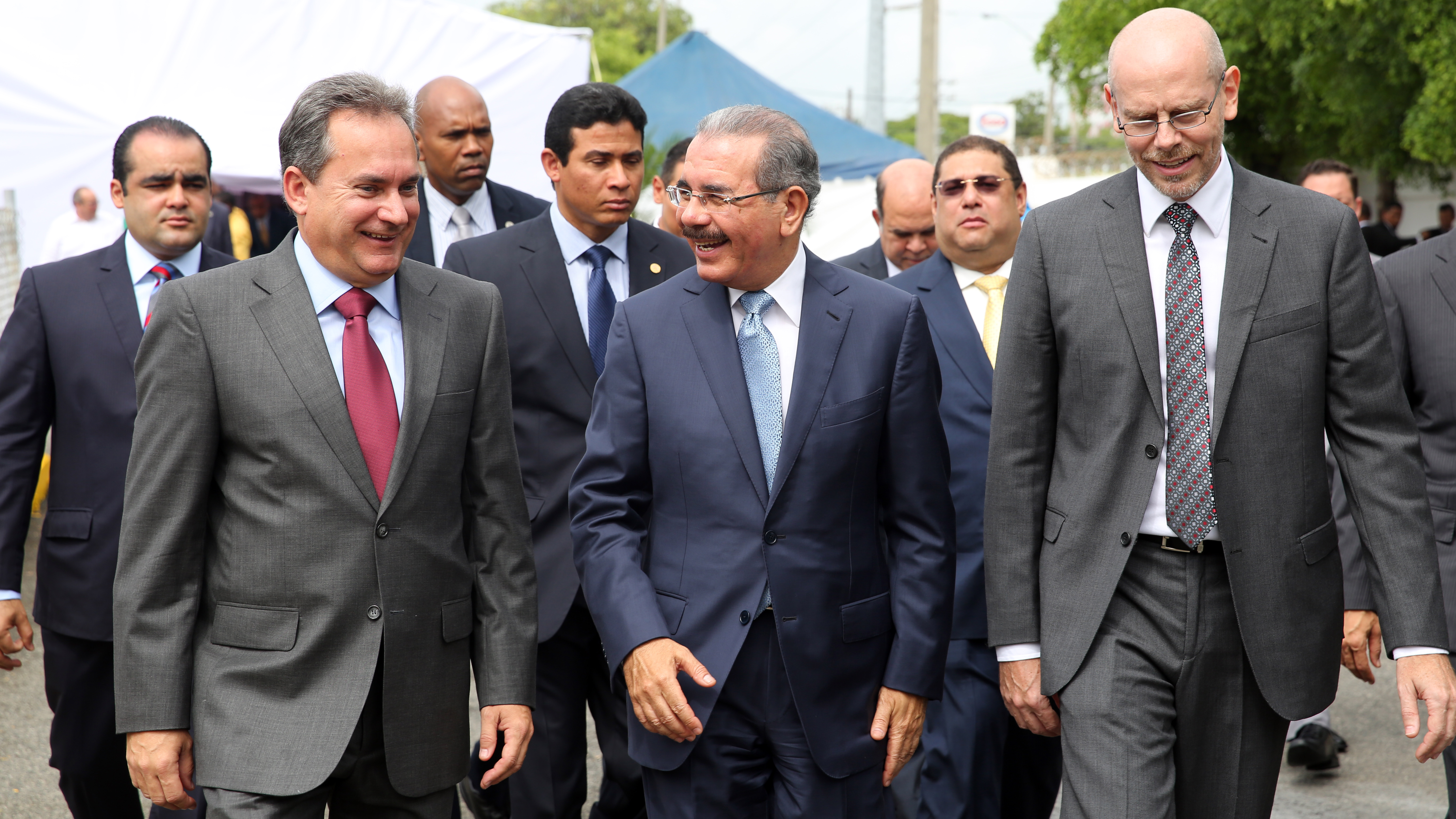 Franklin E. León Herbert, presidente de la empresa; Danilo Medina Sánchez, presidente de la República y Alejandro Fernández, director industrial CND. Foto: Luis Ruiz Tito/Presidencia República Dominicana Nota de prensa: <a href="http://www.presidencia.gob.do/noticias/presidente-danilo-medina-inaugura-planta-de-biomasa-cerveceria-nacional"