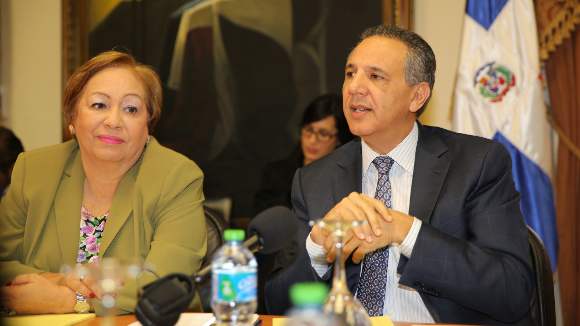José Ramón Peralta, ministro Administrativo de la Presidencia, y Luisa Fernández, directora del Consejo Nacional de Zonas Francas de Exportación.
