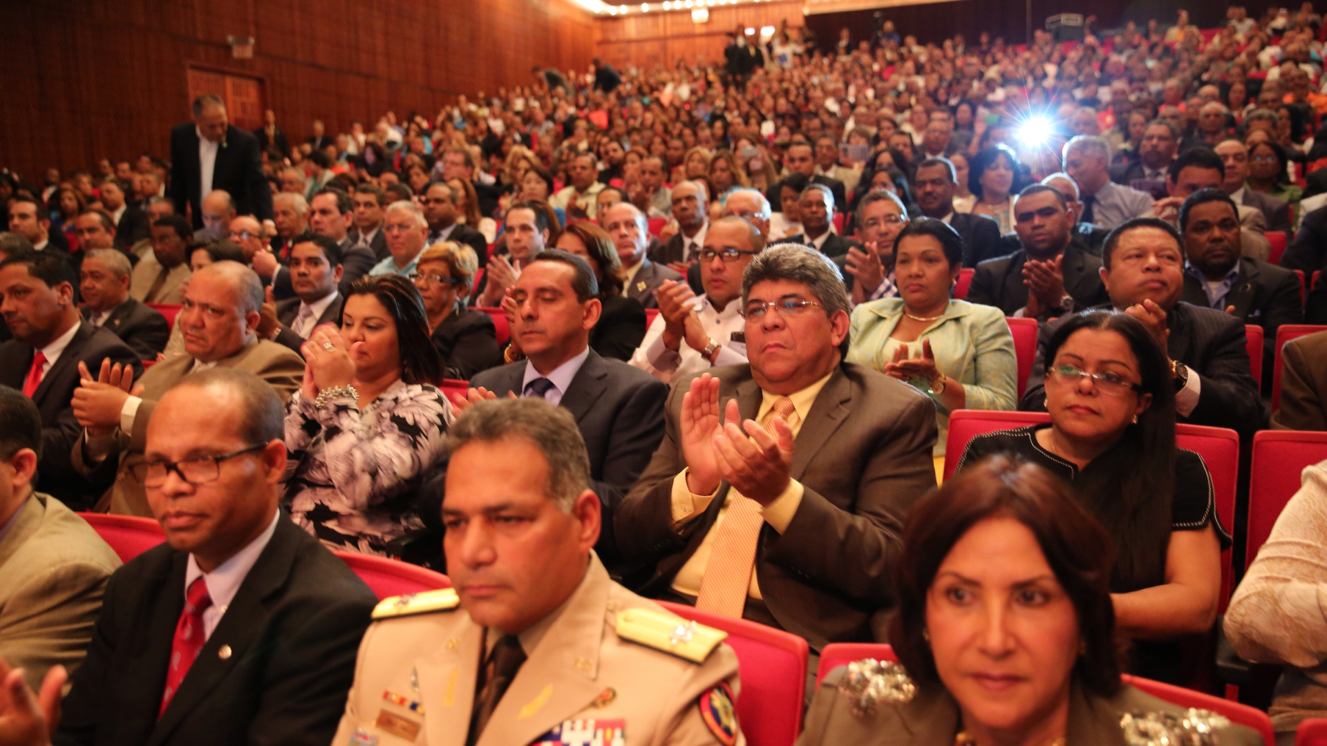 Participantes en el acto de premiación, encabezado por el presidente Danilo Medina en el Gran Teatro del Cibao, de Santiago.