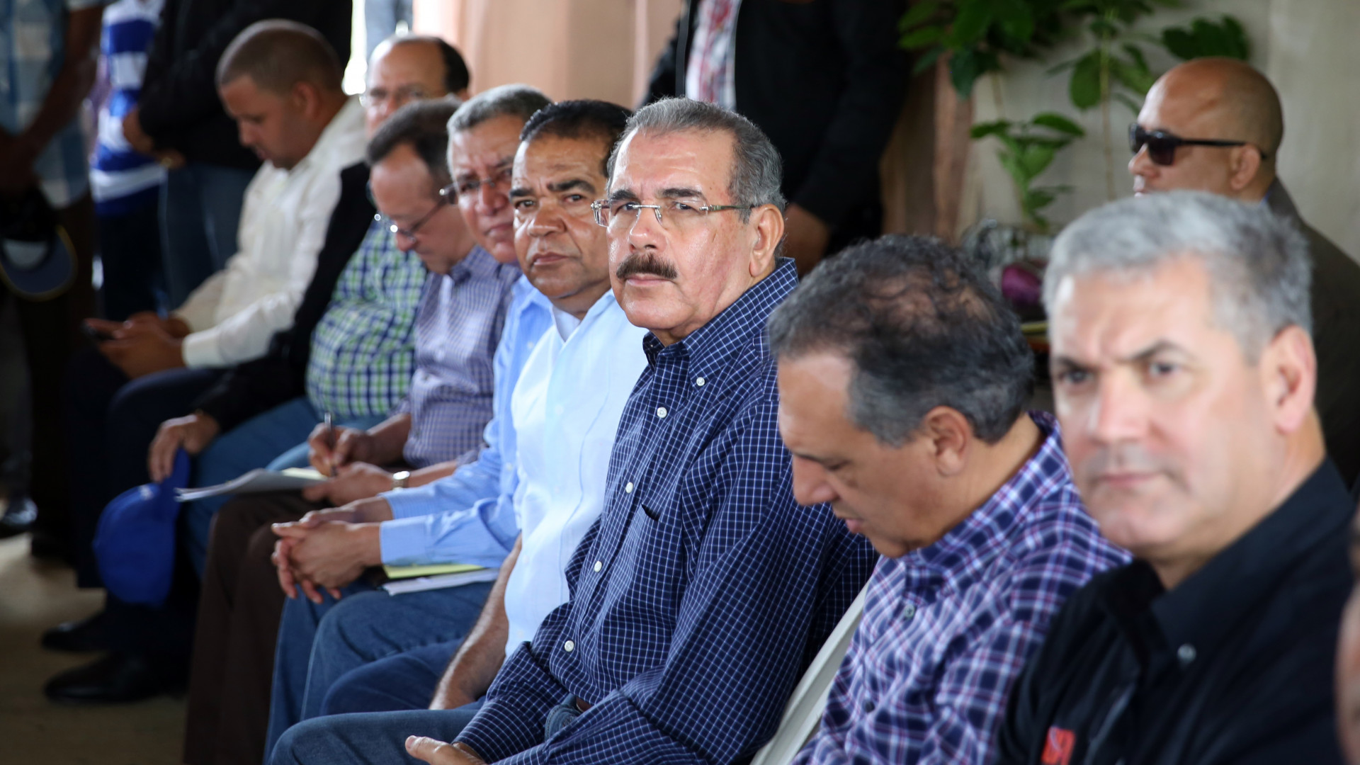 Presidente Medina y funcionarios del Estado durante visita sorpresa a la zona.