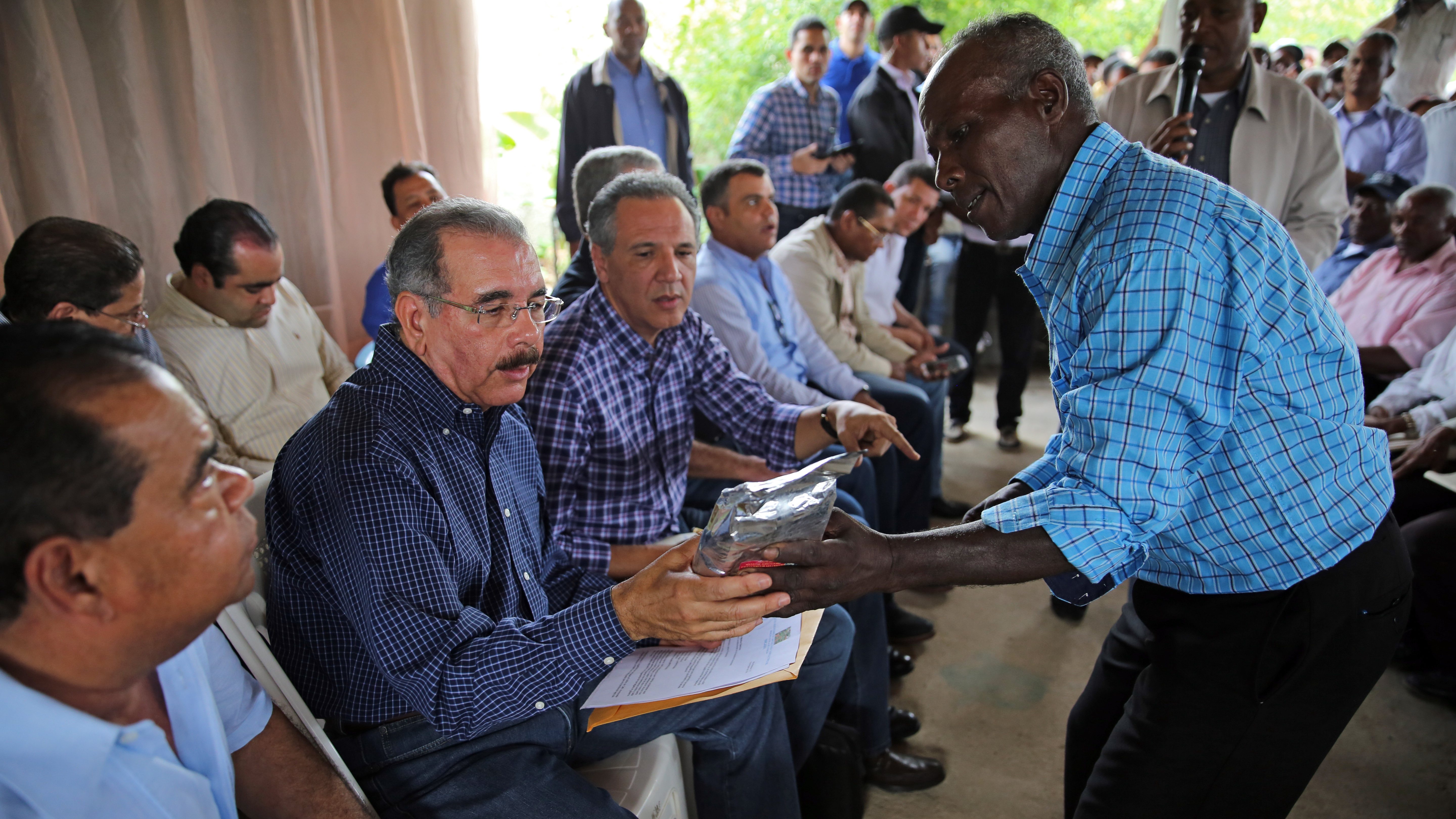 Presidente Medina al escuchar a dirigentes de productores presentes durante visita sorpresa.