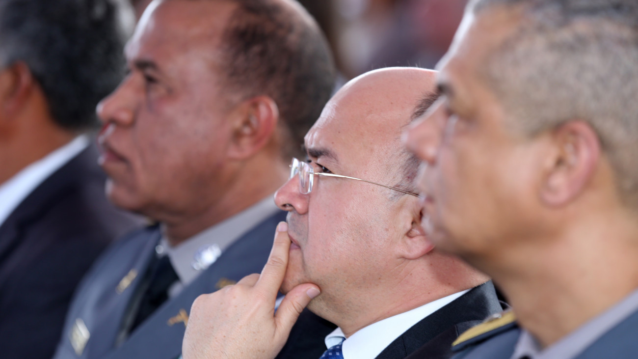 Ministros, funcionarios del Estado, autoridades militares y provinciales, presentes en el acto inaugural por inicio de la obra.