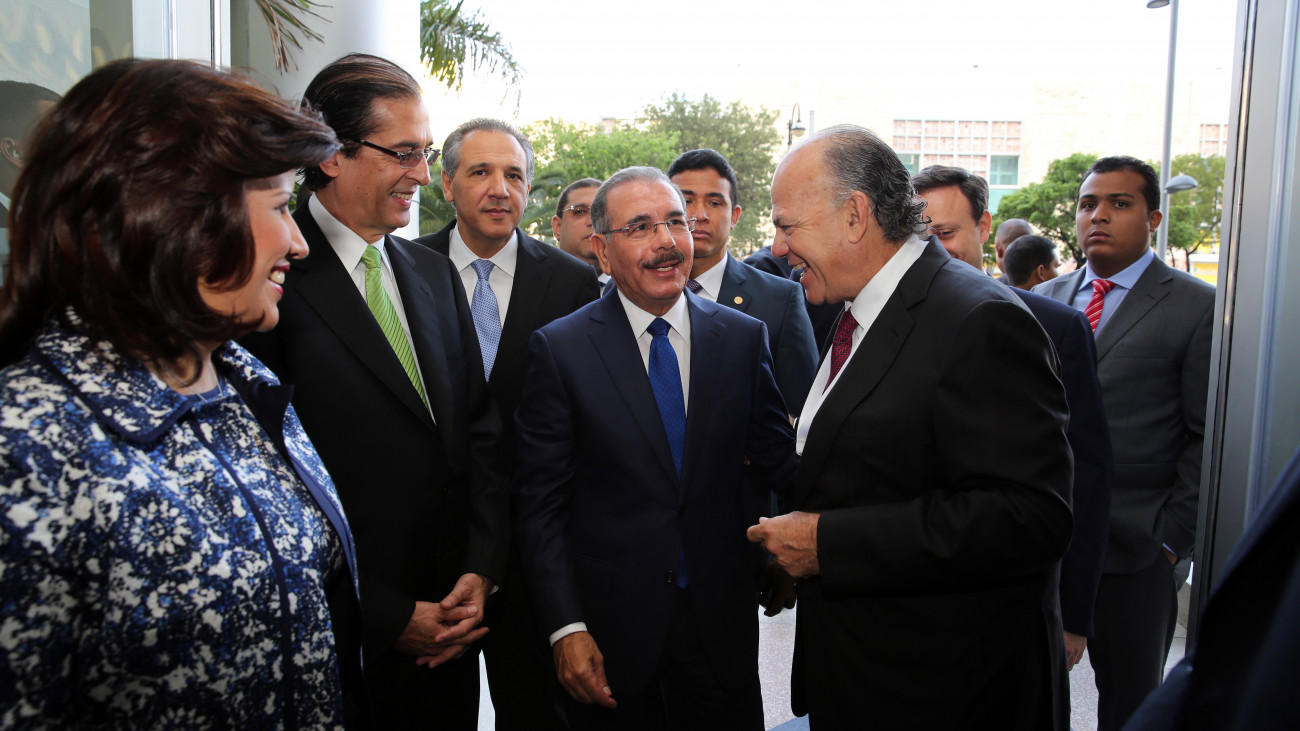 Presidente de la República, Danilo Medina junto a la vicepresidenta, Margarita Cedeño de Fernández y Luis Emilio Velutini, presidente del Grupo Velutini, al llegar al evento.
