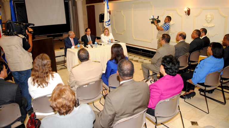 En el acto de firma del convenio, realizado en el Salón Hermanas Mirabal del Palacio Nacional, estuvieron presentes Zoraima Cuello, viceministra de la Presidencia; Inocencio García el viceministro de Cooperación Internacional del Ministerio de Economía, Planificación y Desarrollo; el general (R) Luis Antonio Luna Paulino, director de la Defensa Civil; Gloria Ceballos, directora de la Oficina Nacional de Meteorología, entre otros.