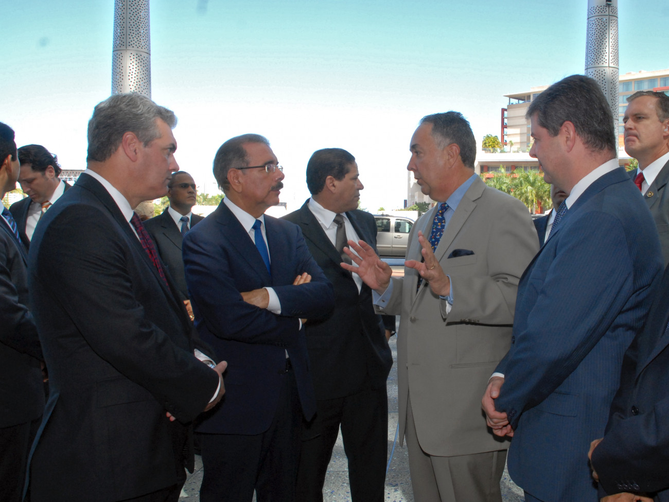 El presidente Danilo Medina al realizar un tour guiado del Centro de Convenciones de Puerto Rico. Le acompañan el arquitecto Pedro Jiménez, quien fungió como guía al mostrale las diversas áreas que integran la edificación.