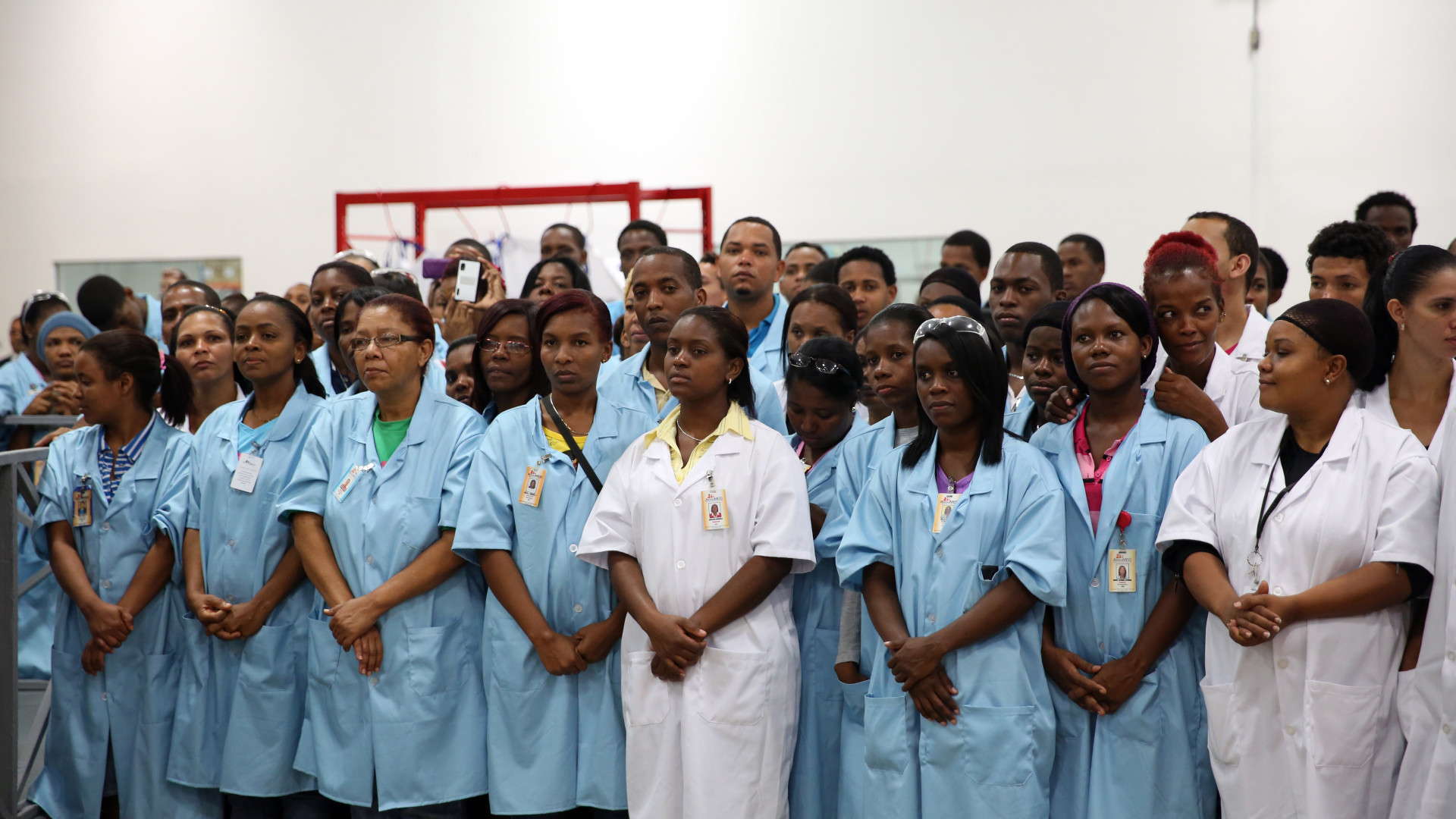 Personal dominicano de planta manufactura de la empresa de zona franca, del Parque Industrial Itabo S. A, (PIISA) en San Cristóbal.