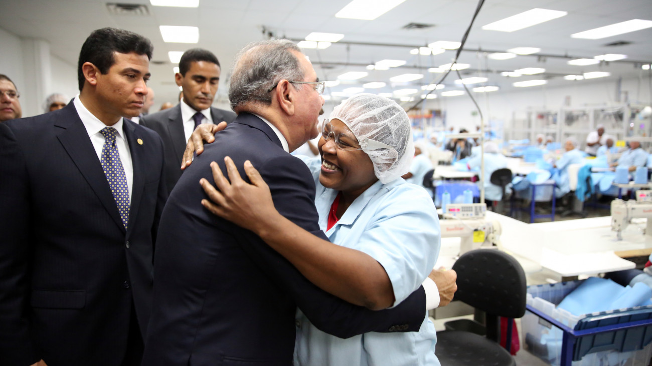 Presidente Danilo Medina junto a empleados de la empresa Fenwal International Inc, en Zona Franca de San Cristóbal durante recorrido previo a recepción inaugural. Foto: Luis Ruiz Tito/Presidencia República Dominicana