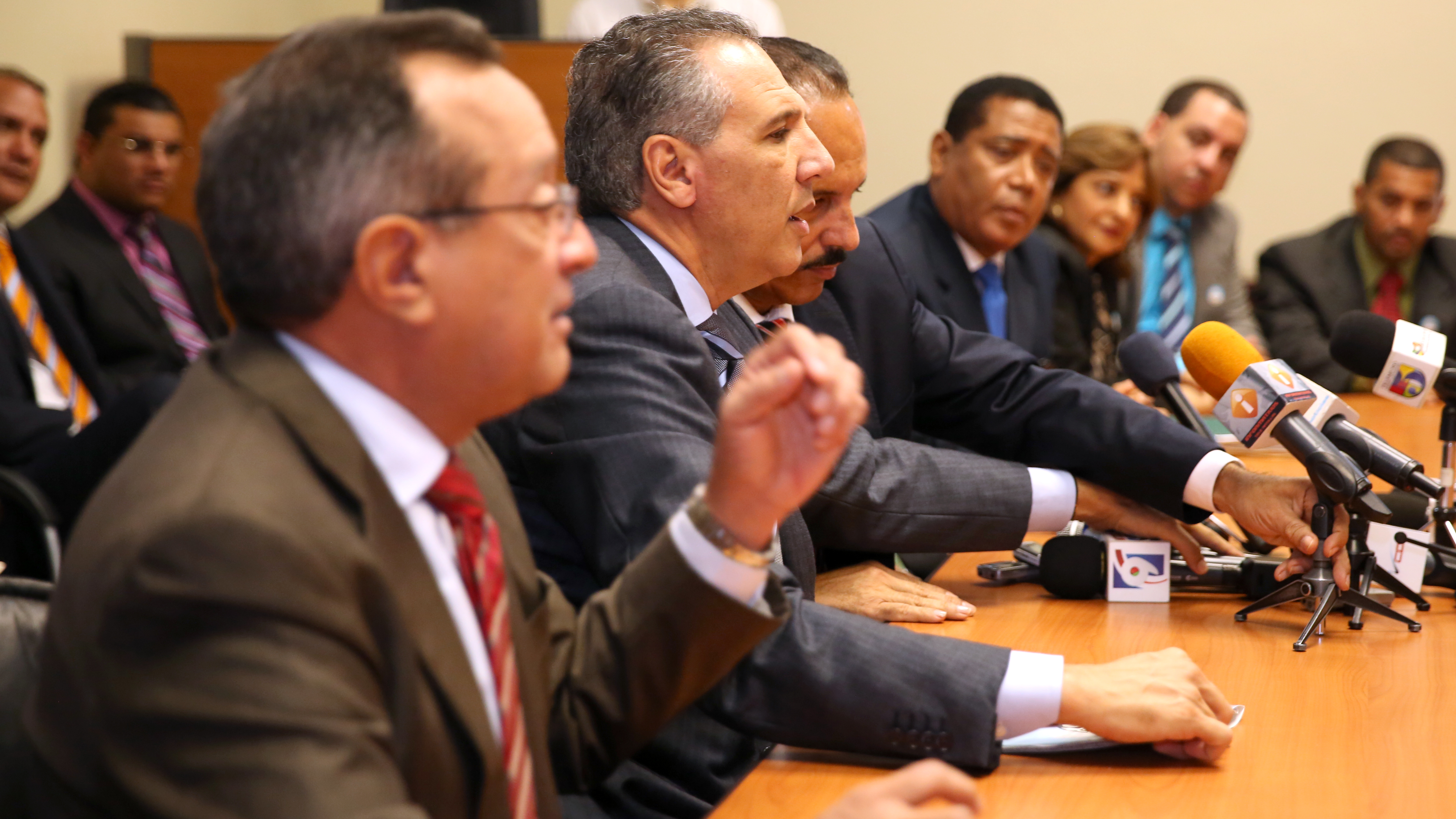 Acto de entrega de cheques por 41 millones de pesos para trabajos de construcción del proyecto El Riíto en La Vega, encabezado por el ministro administrativo de la Presidencia, José Ramón Peralta y ministro de Agricultura, Ángel Estévez, en el Palacio Nacional.