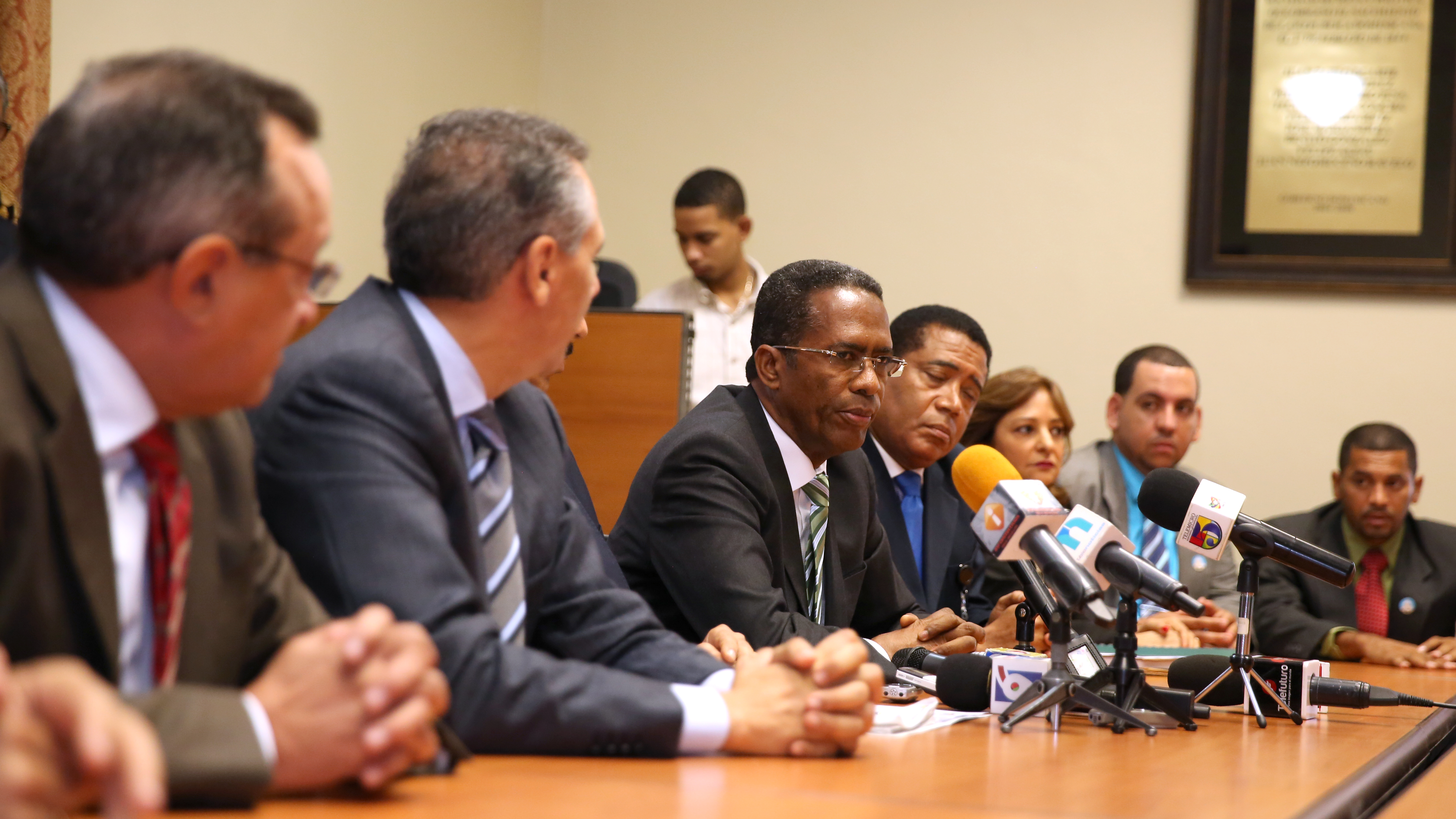 José Ramón Peralta junto a ingenieros y arquitectos ganadores de la construcción del proyecto, en acto celebrado hoy en el Salón Los Trinitarios del Palacio Nacional.