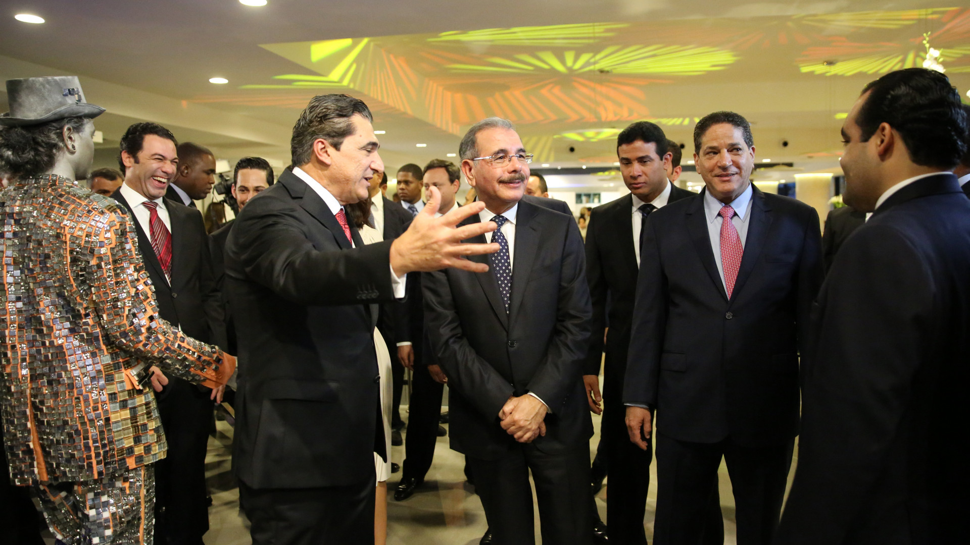 Presidente Danilo Medina Sánchez en compañía de Ricardo Subero Isa, presidente de DCM y otras personalidades presentes durante recorrido por la tienda.
