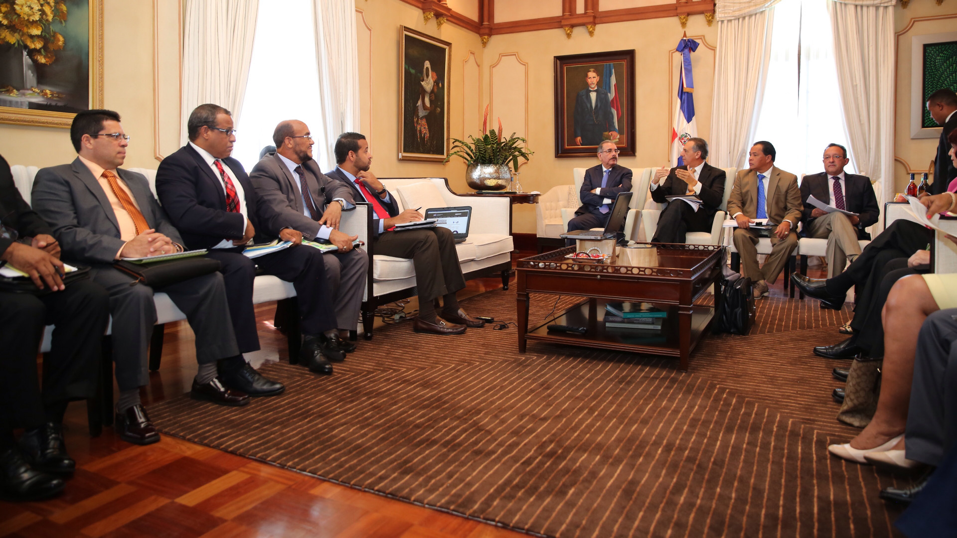 Reunión de seguimiento encabezada por el presidente Medina; los ministros Administrativo de la Presidencia y de Agricultura, José Ramón Peralta y Ángel Estévez con principales directivos de proyectos iniciados en viajes de Visitas Sorpresa por diferentes zonas del país, a los fines de evaluar los avances logrados.