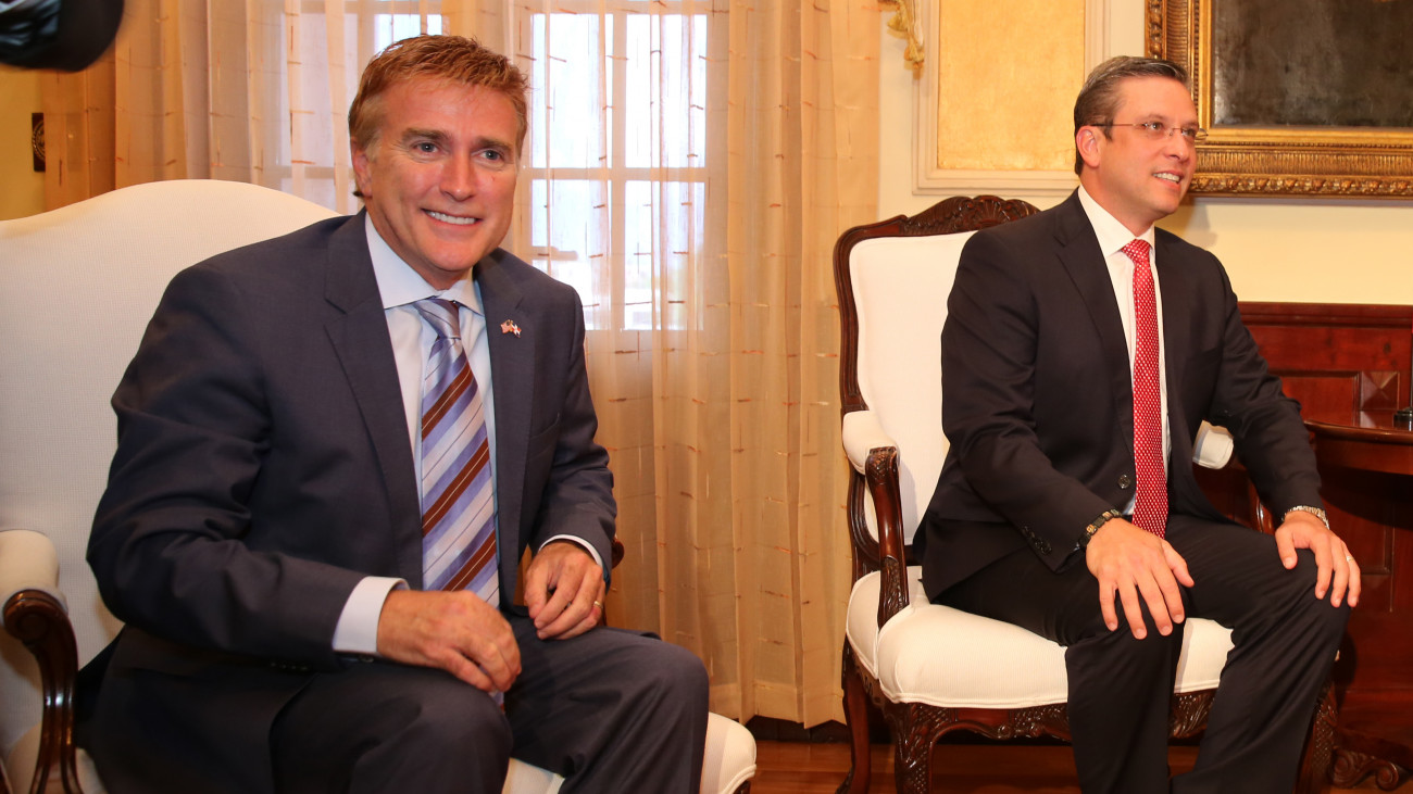 Visita oficial del gobernador de Puerto Rico, Alejandro García Padilla acompañado del embajador de Estados Unidos, James (Wally) Brewster, en el Palacio Nacional.